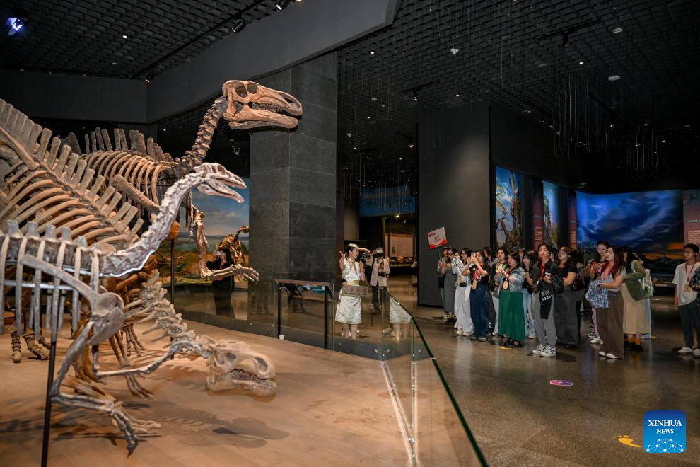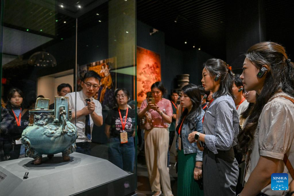 Participants of a cross-Strait journalism camp visit Inner Mongolia Museum in Hohhot, north China's Inner Mongolia Autonomous Region, Aug. 21, 2024. A cross-Strait journalism camp for university students opened on Tuesday in the city of Hohhot, with approximately 200 students from both the mainland and Taiwan in attendance. The students are from 10 universities on the mainland and eight universities in Taiwan. (Xinhua/Lian Zhen)