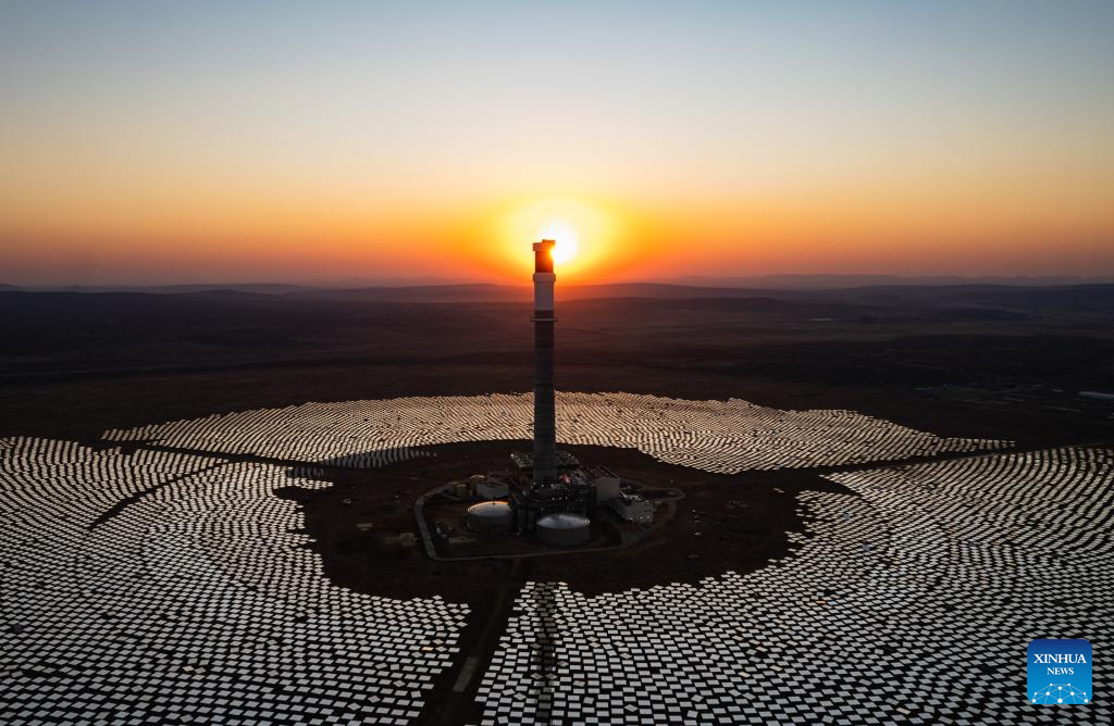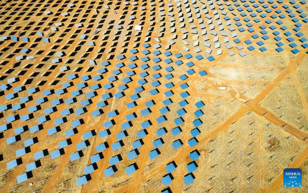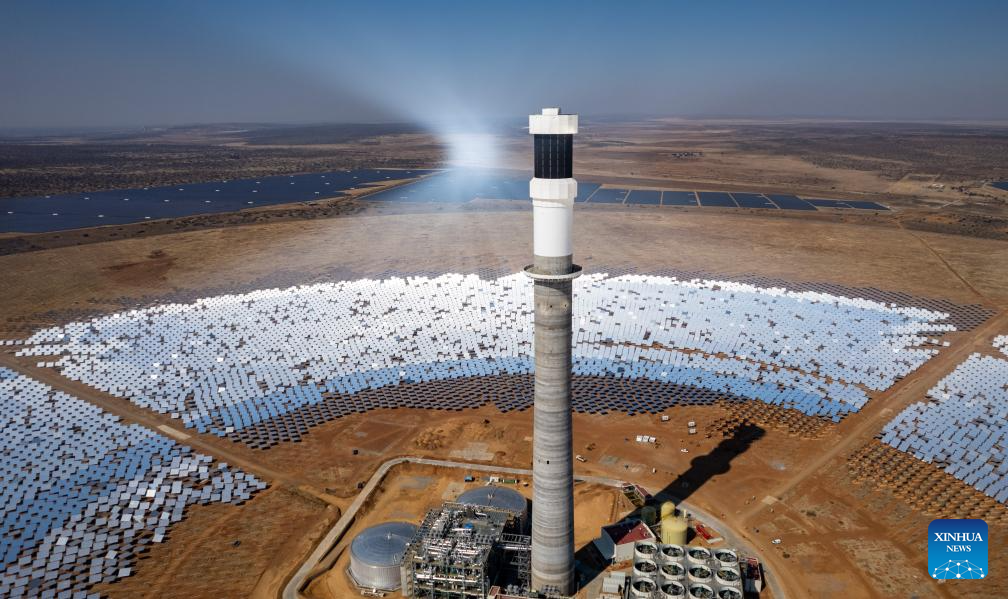 This photo taken on Aug. 20, 2024 shows reflector arrays of the Redstone Concentrated Solar Thermal Power Project near Postmasburg in Northern Cape Province of South Africa.