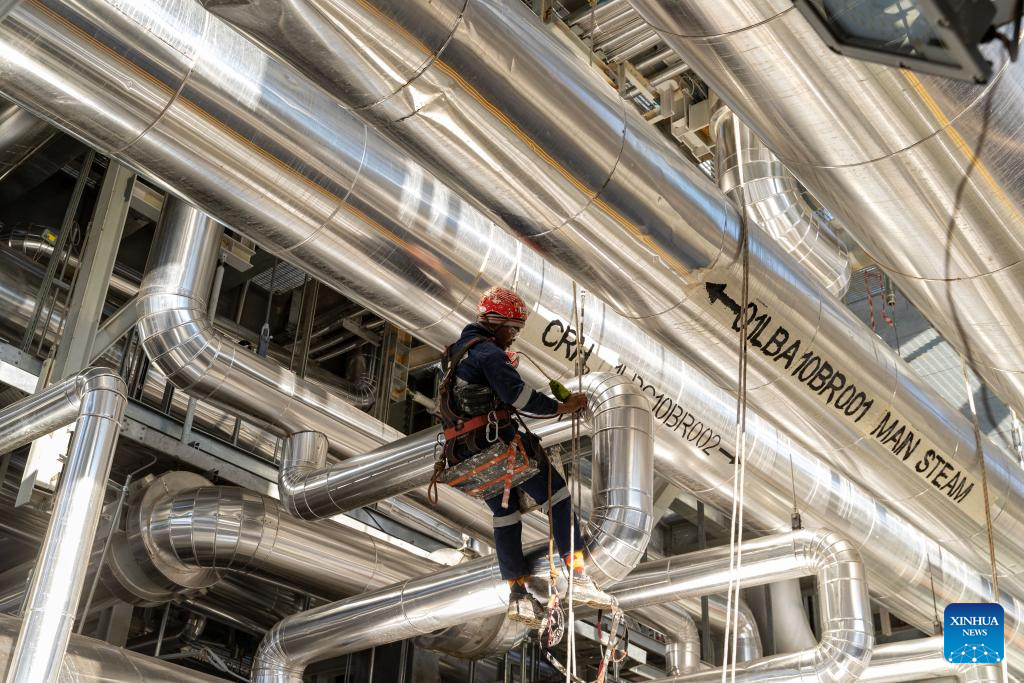 A staff member works at the Redstone Concentrated Solar Thermal Power Project near Postmasburg in Northern Cape Province of South Africa, Aug. 20, 2024.