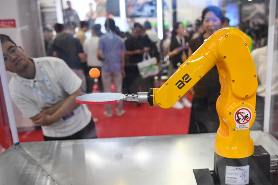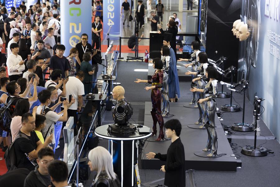 This photo shows an exterior view of the venue for the World Robot Conference 2024 in Beijing, capital of China, Aug. 21, 2024. (Xinhua/Ren Chao)This photo shows an exterior view of the World Robot Conference 2024 in Beijing, capital of China, Aug. 21, 2024. (Xinhua/Ren Chao)People visit the World Robot Conference 2024 in Beijing, capital of China, Aug. 21, 2024. (Xinhua/Li Xin)A visitor plays Go game, known as Weiqi in Chinese, with a robot during the World Robot Conference 2024 in Beijing, capital of China, Aug. 21, 2024. (Xinhua/Zhang Chenlin)Visitors watch as a robot writes Chinese calligraphy during the World Robot Conference 2024 in Beijing, capital of China, Aug. 21, 2024. (Xinhua/Zhang Chenlin)Humanoid robots are pictured during the World Robot Conference 2024 in Beijing, capital of China, Aug. 21, 2024. (Xinhua/Jin Liwang)Humanoid robots of the "Q Family" are pictured during the World Robot Conference 2024 in Beijing, capital of China, Aug. 21, 2024. (Xinhua/Jin Liwang)Visitors watch as a robot makes Jian Bing, a Chinese crepe, during the World Robot Conference 2024 in Beijing, capital of China, Aug. 21, 2024. (Xinhua/Chen Zhonghao)Visitors watch as a robot plays ping-pong during the World Robot Conference 2024 in Beijing, capital of China, Aug. 21, 2024. (Xinhua/Chen Zhonghao)A robot is pictured at the booth of Tesla during the World Robot Conference 2024 in Beijing, capital of China, Aug. 21, 2024. (Xinhua/Chen Zhonghao)Robots greet each other during the World Robot Conference 2024 in Beijing, capital of China, Aug. 21, 2024. (Xinhua/Jin Liwang)A humanoid robot demonstrates cooking skills during the World Robot Conference 2024 in Beijing, capital of China, Aug. 21, 2024. (Xinhua/Zhang Chenlin)Visitors examine an educational robot during the World Robot Conference 2024 in Beijing, capital of China, Aug. 21, 2024. (Xinhua/Li Xin)A humanoid robot is pictured during the World Robot Conference 2024 in Beijing, capital of China, Aug. 21, 2024. (Xinhua/Ren Chao)A humanoid robot is pictured during the World Robot Conference 2024 in Beijing, capital of China, Aug. 21, 2024. (Xinhua/Ren Chao)An intelligent electroencephalogram (EEG) device is pictured during the World Robot Conference 2024 in Beijing, capital of China, Aug. 21, 2024. (Xinhua/Li Xin)■