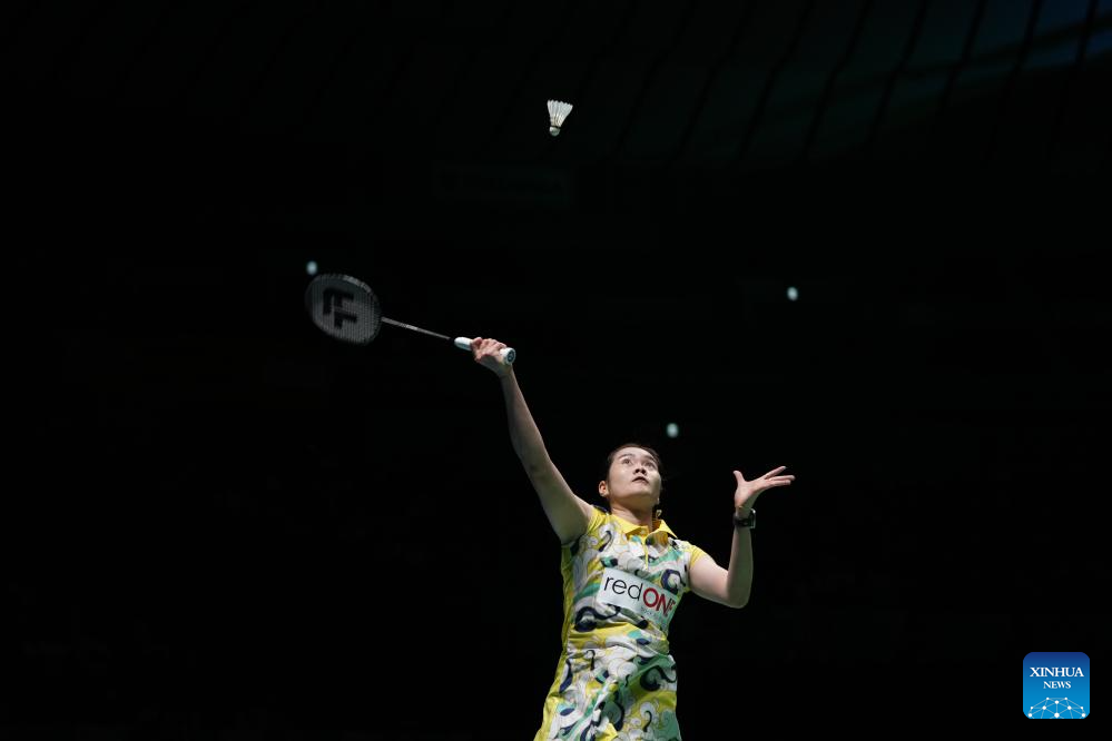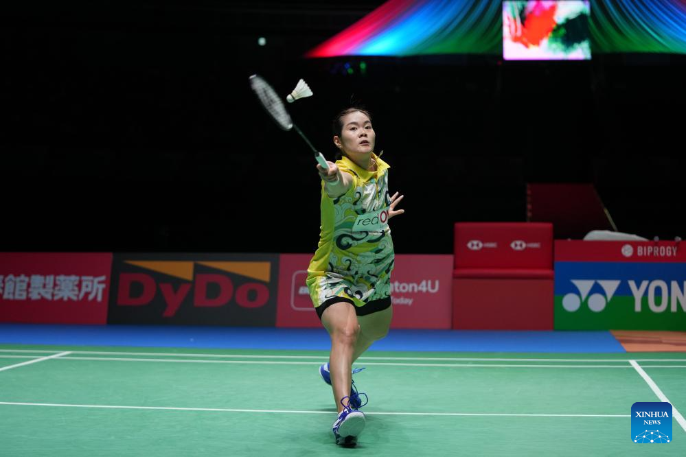 Busanan Ongbamrungphan of Thailand competes during the women's singles final match between Busanan Ongbamrungphan of Thailand and Yamaguchi Akane of Japan at the Japan Badminton Open 2024 in Yokohama, Japan, Aug. 25, 2024. (Xinhua/Zhang Xiaoyu)