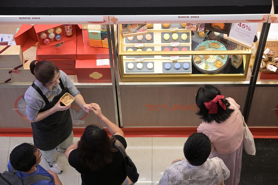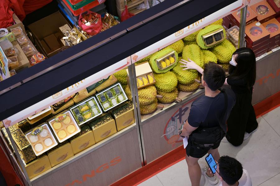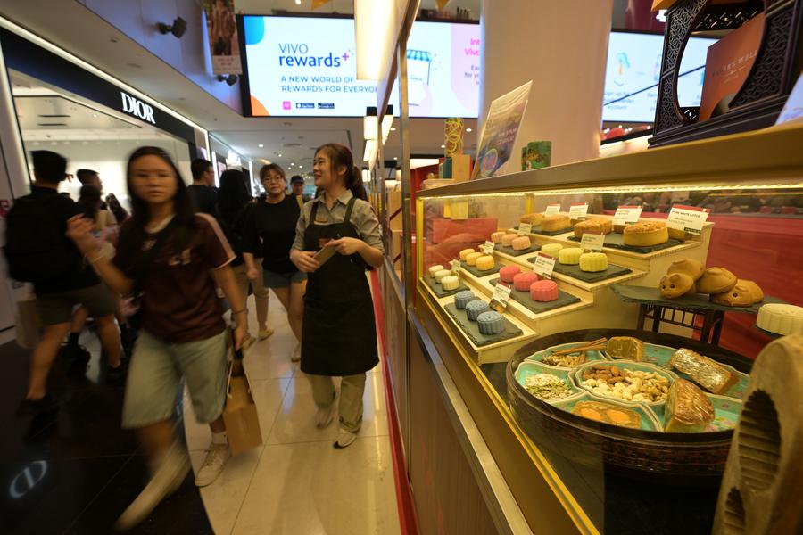 A visitor views an art exhibit during the media preview of the Singapore Night Festival held in Singapore on Aug. 21, 2024. The festival will be held here during weekends from Aug. 23 to Sept. 7. (Photo by Then Chih Wey/Xinhua)A visitor views an art exhibit during the media preview of the Singapore Night Festival held in Singapore on Aug. 21, 2024. The festival will be held here during weekends from Aug. 23 to Sept. 7. (Photo by Then Chih Wey/Xinhua)A cyclist rides past a blooming trumpet tree along the Singapore River in Singapore on Aug. 20, 2024. (Photo by Then Chih Wey/Xinhua)Photo taken on Aug 20, 2024 shows trumpet tree flowers blooming along the Singapore River in Singapore. (Photo by Then Chih Wey/Xinhua)People select durian-flavored mooncakes ahead of the Mid-Autumn Festival which falls on Sept. 17 this year, at a shopping mall in Singapore, Aug. 24, 2024. (Photo by Then Chih Wey/Xinhua)People taste mooncakes ahead of the Mid-Autumn Festival which falls on Sept. 17 this year, at a shopping mall in Singapore, Aug. 24, 2024. (Photo by Then Chih Wey/Xinhua)People walk past a booth of mooncakes ahead of the Mid-Autumn Festival which falls on Sept. 17 this year, at a shopping mall in Singapore, Aug. 24, 2024. (Photo by Then Chih Wey/Xinhua)■