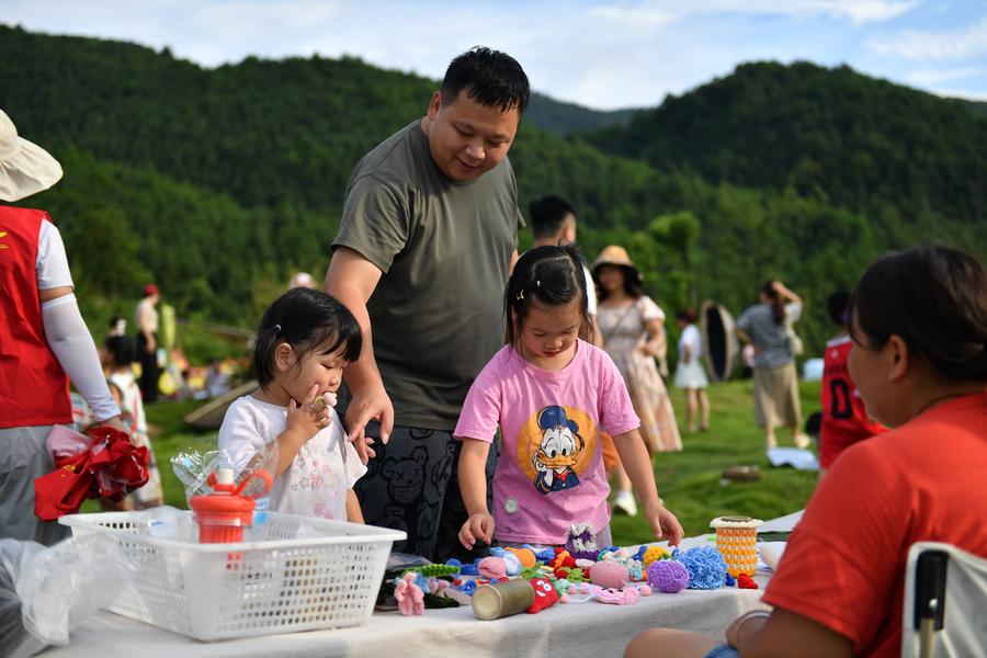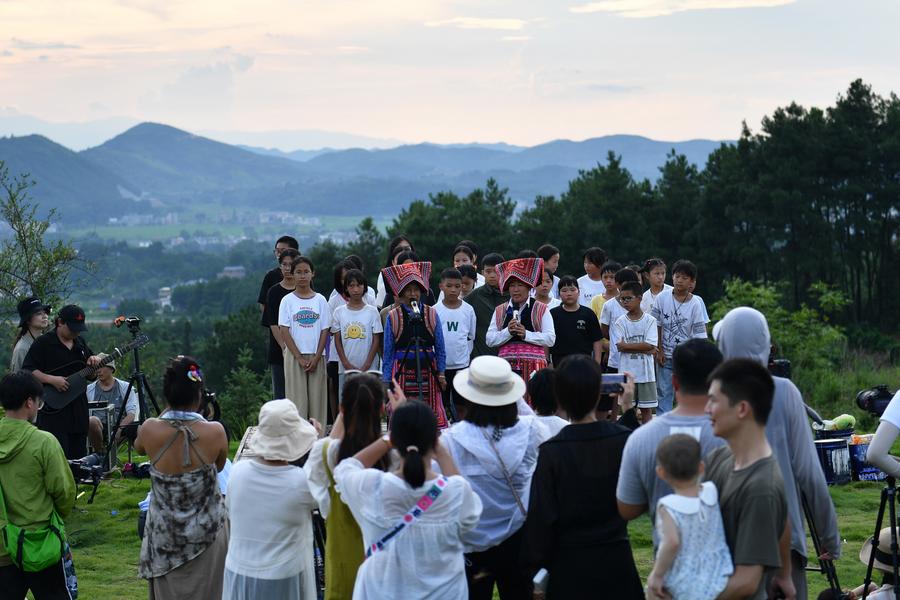 NINGYUAN, Aug. 26 (Xinhua) -- A rural youth art festival was held at an art and culture exchange center in Ningyuan County of central China's Hunan Province on Sunday, where over 30 children from Youyujing Village and Duoshan Village of the county enjoyed various activities such as singing songs of Yao ethnic group and performing plays in costumes designed and made by themselves.