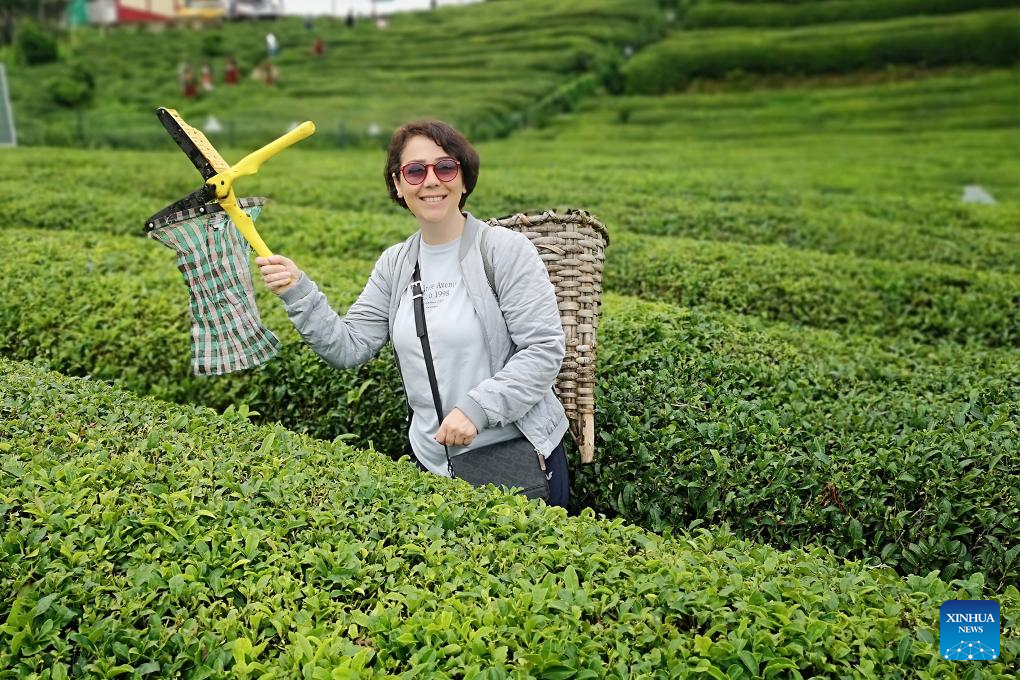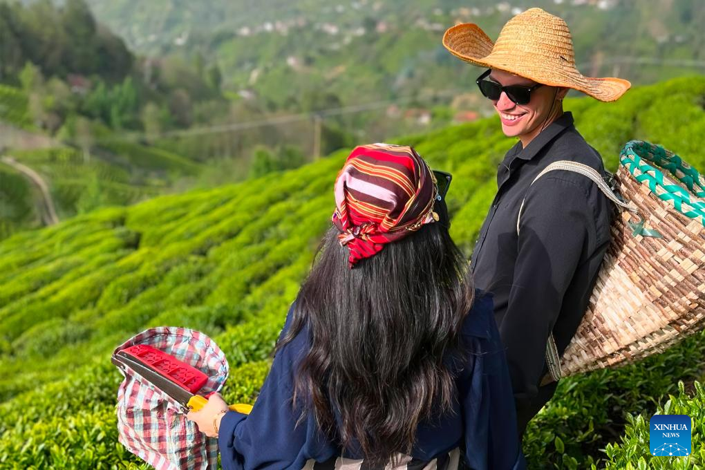 A tourist visits a tea garden in Rize, a coastal city in the eastern part of Türkiye's Black Sea region, on Aug. 27, 2024. The Black Sea coastal cities have yet to turn as famous as other Turkish destinations -- the sandy beaches of the Turkish Mediterranean and Aegean coasts or cultural treasures of Istanbul, the former capital of both Byzantine and Ottoman Empires. The untapped tourism potential has attracted the attention of many quick-minded local entrepreneurs, who are creating and developing new forms of tourism in Black Sea destinations. (Mustafa Kaya/Handout via Xinhua)
