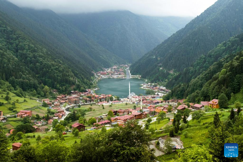 (240827) -- TRBAZON (TÜRKIYE), Aug. 27, 2024 (Xinhua) -- Photo taken on Aug. 27, 2024 shows the Long Lake in Trbazon, Türkiye. The Black Sea coastal cities have yet to turn as famous as other Turkish destinations -- the sandy beaches of the Turkish Mediterranean and Aegean coasts or cultural treasures of Istanbul, the former capital of both Byzantine and Ottoman Empires. The untapped tourism potential has attracted the attention of many quick-minded local entrepreneurs, who are creating and developing new forms of tourism in Black Sea destinations. (Mustafa Kaya/Handout via Xinhua)