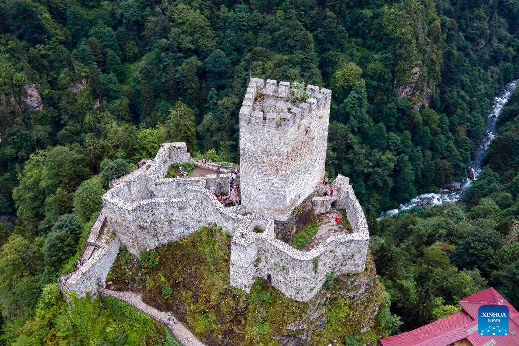 Photo taken on Aug. 27, 2024 shows Rize Castle in Rize, a coastal city in the eastern part of Türkiye's Black Sea region. The Black Sea coastal cities have yet to turn as famous as other Turkish destinations -- the sandy beaches of the Turkish Mediterranean and Aegean coasts or cultural treasures of Istanbul, the former capital of both Byzantine and Ottoman Empires. The untapped tourism potential has attracted the attention of many quick-minded local entrepreneurs, who are creating and developing new forms of tourism in Black Sea destinations. (Mustafa Kaya/Handout via Xinhua)