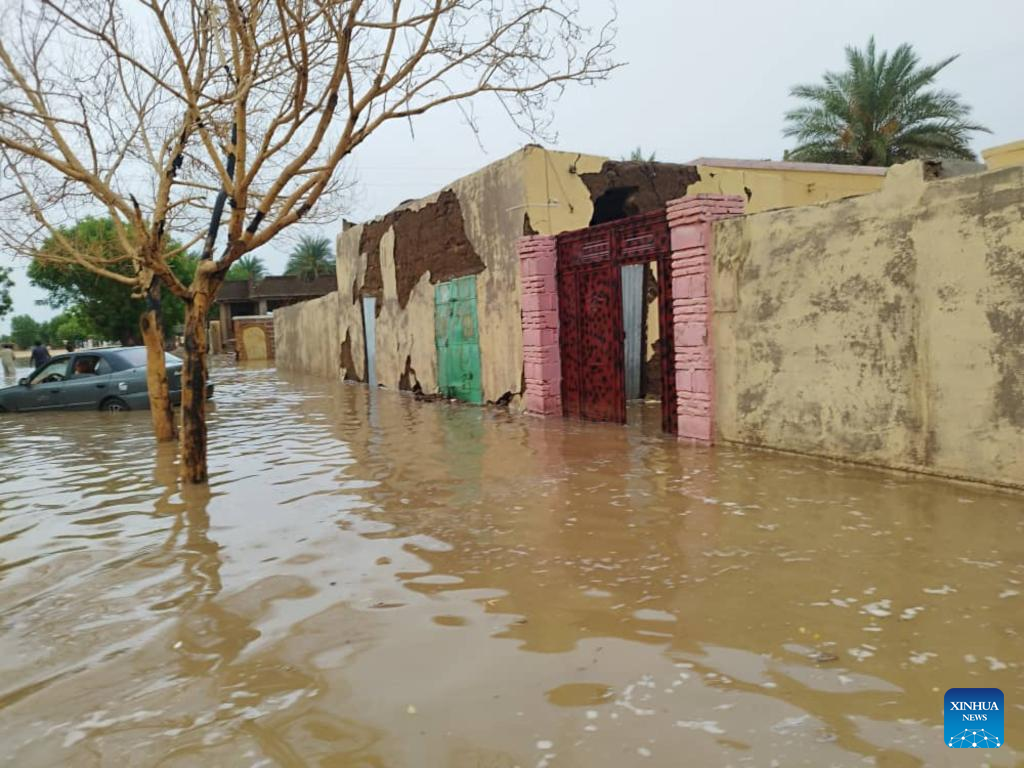 This photo taken with a mobile phone shows flooded houses in Dongola, Sudan, Aug. 27, 2024. The death toll from heavy rains hitting so far 10 states in Sudan has reached 138, the country's Health Ministry said Tuesday. (Photo by Abdul-Rahman Awad/Xinhua)
