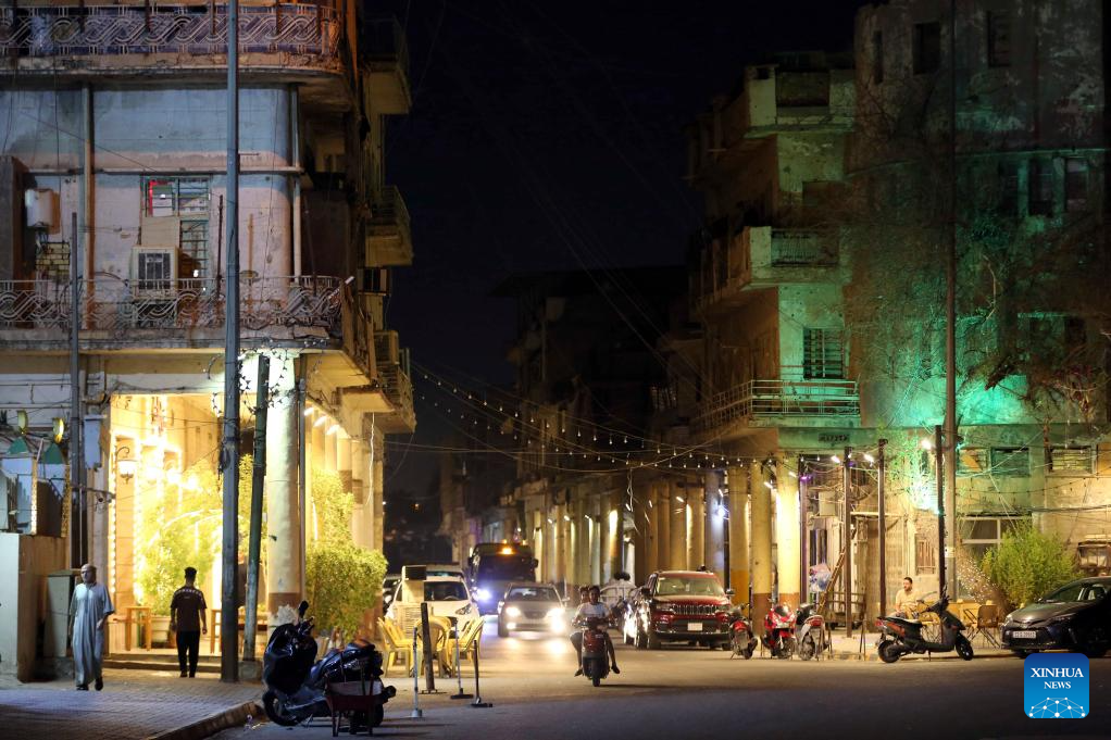 This photo taken on Aug. 28, 2024 shows the night view of Baghdad, capital of Iraq. (Xinhua/Khalil Dawood)