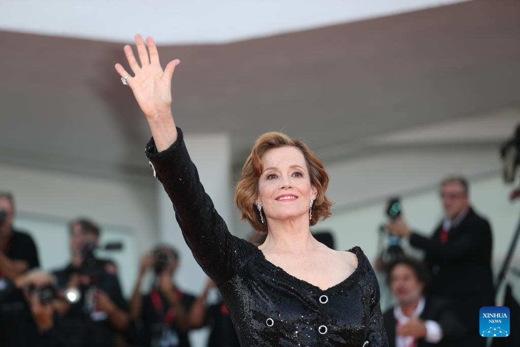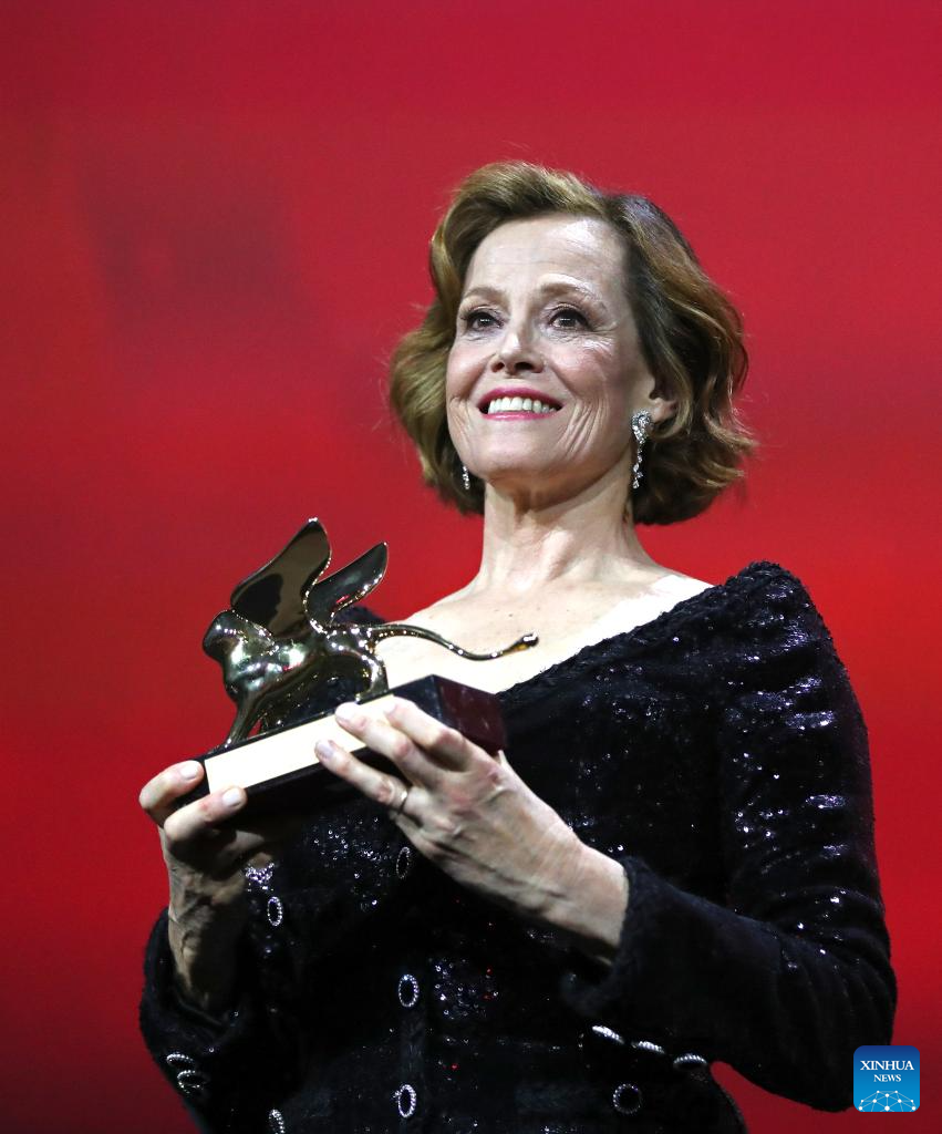 American actress Sigourney Weaver was awarded with the Golden lion for Lifetime Achievement of the 81st Venice Film Festival, which kicked off on Wednesday. (Xinhua/Li Jing)