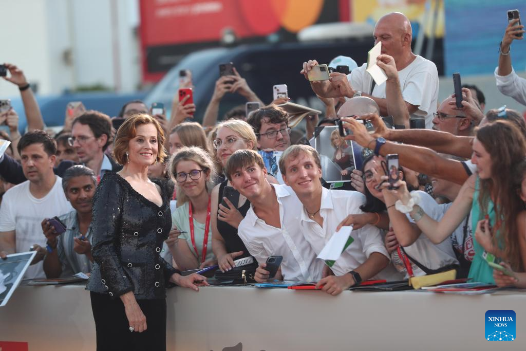 Sigourney Weaver interacts with film fans after the opening ceremony of the 81st Venice Film Festival in Venice, Italy, Aug. 28, 2024.