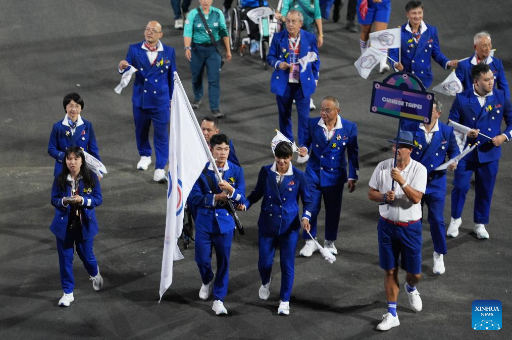 Members of the delegation of Chinese Taipei arrive for the opening ceremony of the Paris 2024 Paralympic Games in Paris, France, Aug. 28, 2024. (Xinhua/Hou Zhaokang)