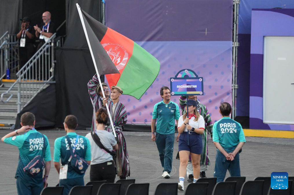 Members of the delegation of Afghanistan arrive for the opening ceremony of the Paris 2024 Paralympic Games in Paris, France, Aug. 28, 2024. (Xinhua/Xing Guangli)