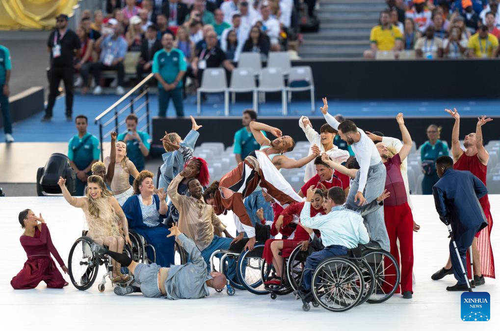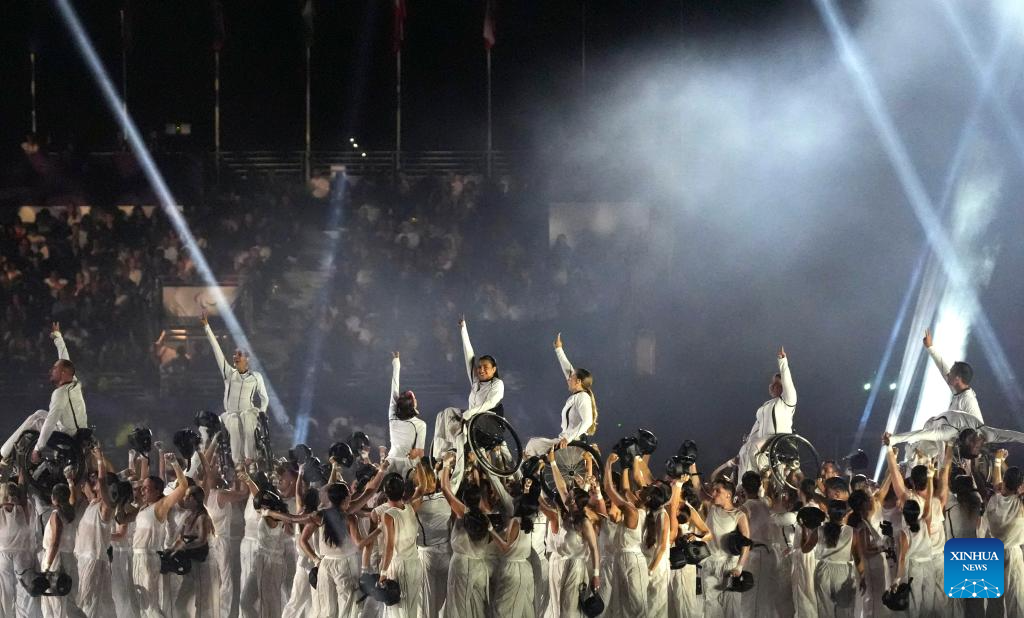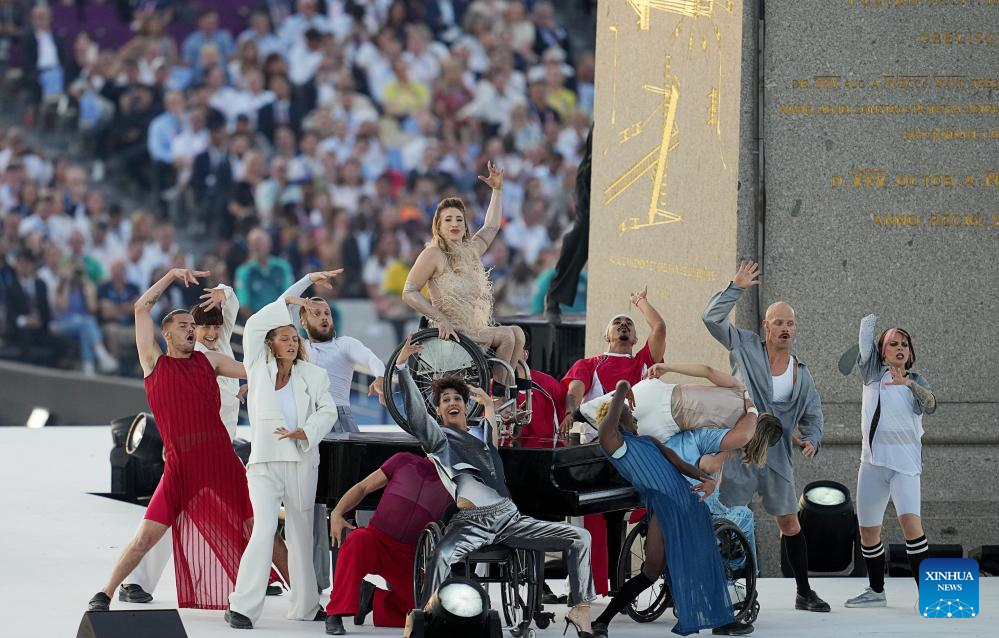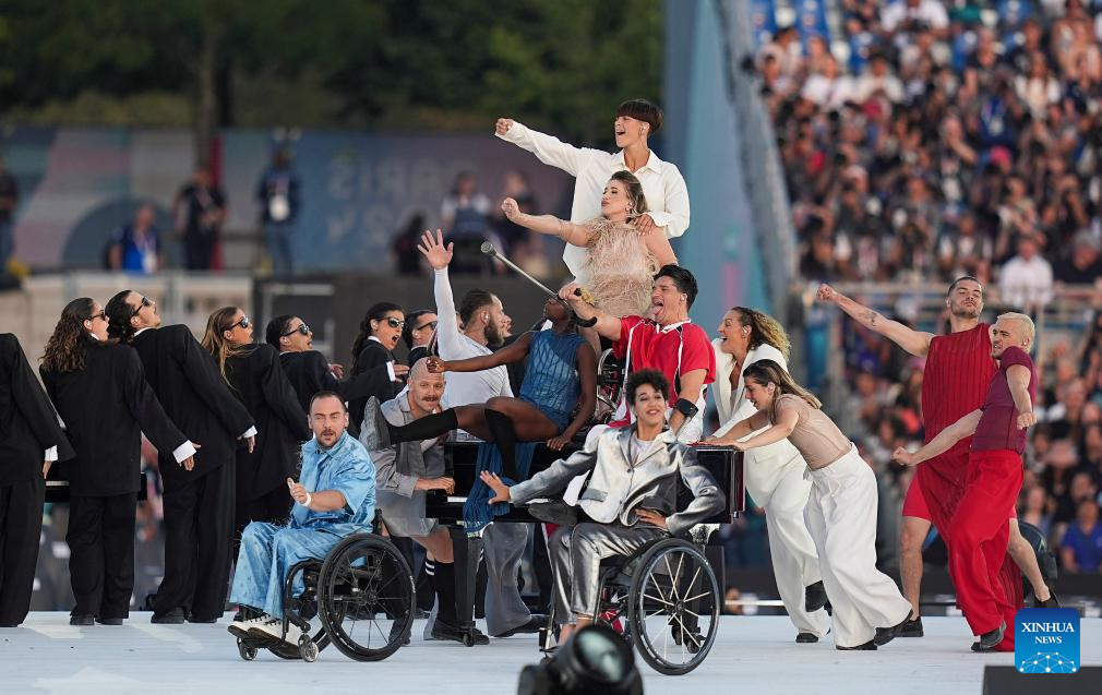 Artists perform during the opening ceremony of the Paris 2024 Paralympic Games in Paris, France, Aug. 28, 2024. (Xinhua/Zhang Haofu)