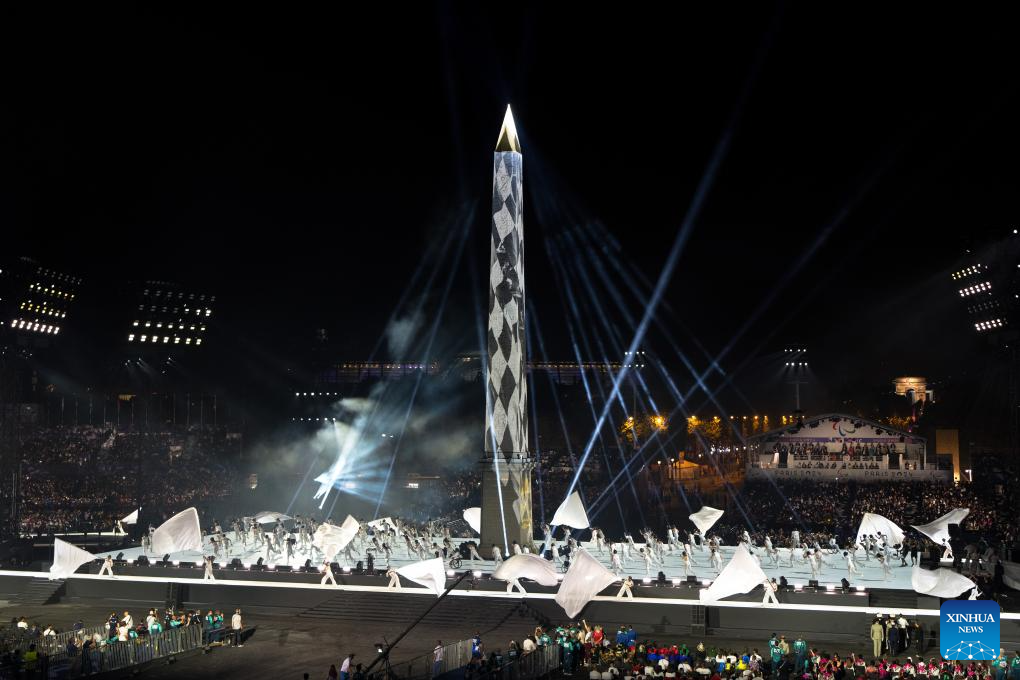 Artists perform during the opening ceremony of the Paris 2024 Paralympic Games in Paris, France, Aug. 28, 2024. (Xinhua/Xing Guangli)