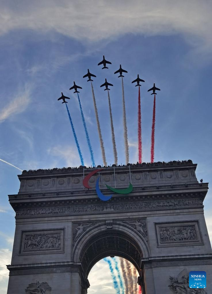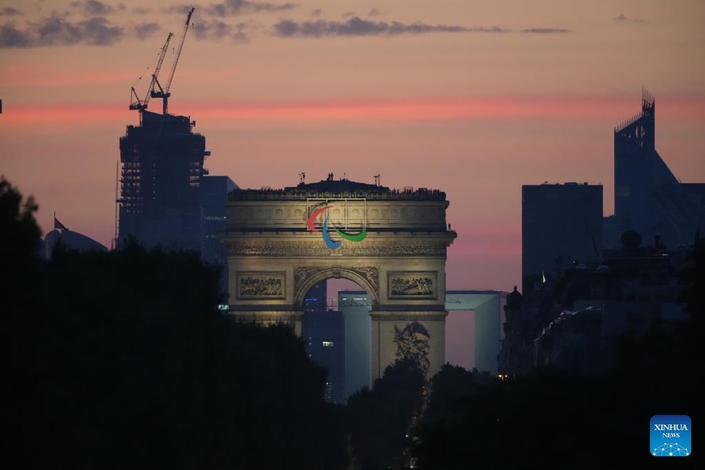 Arc de Triomphe is seen during the opening ceremony of the Paris 2024 Paralympic Games in Paris, France, Aug. 28, 2024. (Xinhua/Zhang Haofu)
