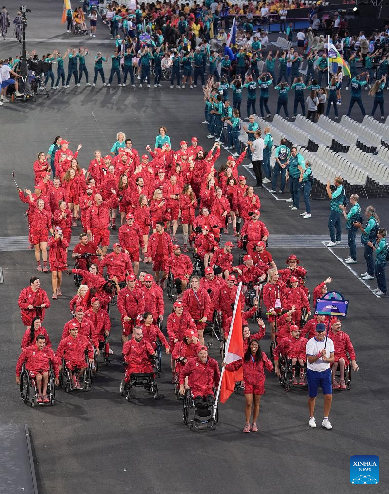 Members of the delegation of Canada arrive for the opening ceremony of the Paris 2024 Paralympic Games in Paris, France, Aug. 28, 2024. (Xinhua/Hou Zhaokang)