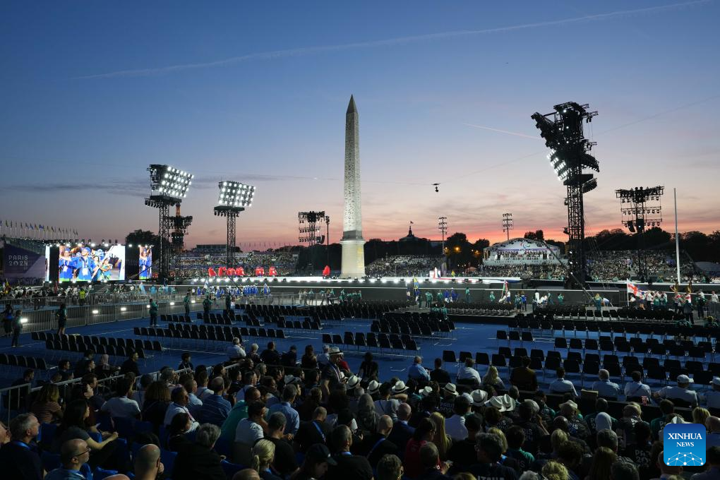 Picture taken on Aug. 28, 2024 shows the general view of the opening ceremony of the Paris 2024 Paralympic Games in Paris, France. (Xinhua/Gao Jing)
