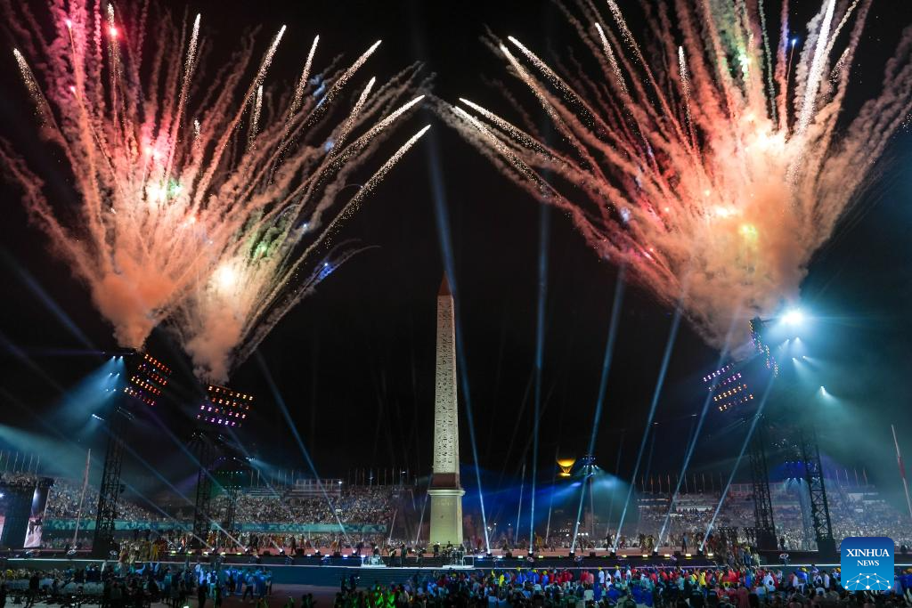 Picture taken on Aug. 28, 2024 shows the general view of the opening ceremony of the Paris 2024 Paralympic Games in Paris, France. (Xinhua/Zhang Cheng)