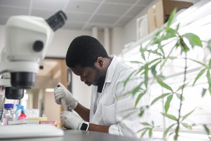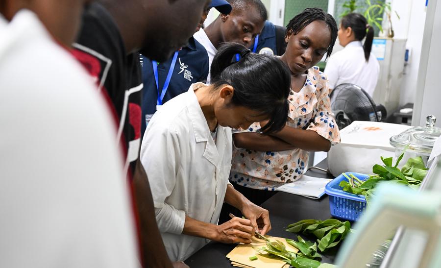 Chinese researcher Chen Qing (R) helps a Nigerian student perform an experiment on cassava pest control at the Sanya Research Institute of Chinese Academy of Tropical Agricultural Sciences in Sanya, south China's Hainan Province, July 17, 2024. (Xinhua/Zhang Liyun)A Nigerian student performs an experiment on cassava pest control at the Sanya Research Institute of Chinese Academy of Tropical Agricultural Sciences in Sanya, south China's Hainan Province, July 17, 2024.n(Xinhua/Zhang Liyun)A Chinese expert explains cassava breeding techniques to African students at a lab of Chinese Academy of Tropical Agricultural Sciences in south China's Hainan Province, Sept. 17, 2023. (Xinhua/Yang Guanyu)