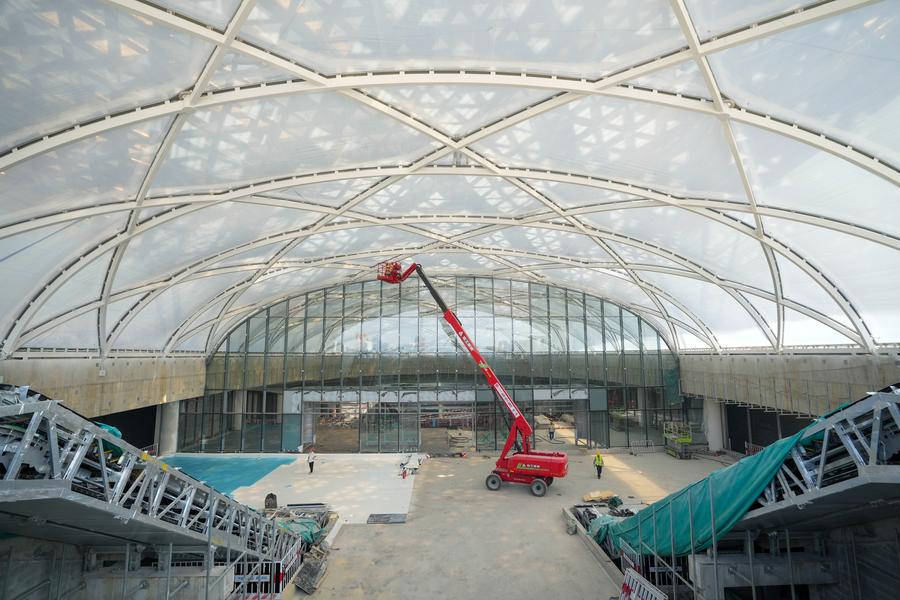 BEIJING, Aug. 30 (Xinhua) -- The main structure of the underground transportation hub at Beijing Sub-center Station in the city's Tongzhou District has been completed as of Friday.