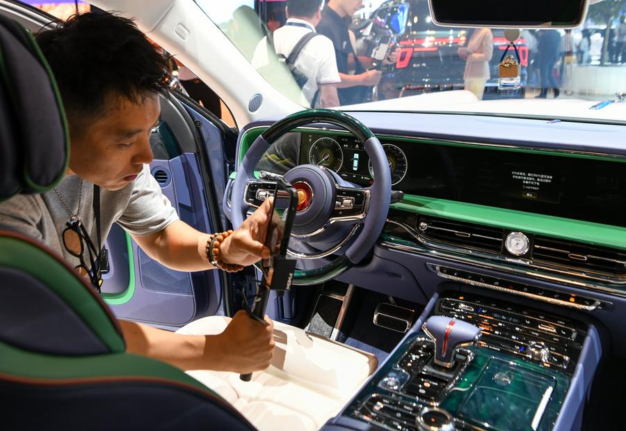 People visit Chengdu Motor Show 2024 in Chengdu, southwest China's Sichuan Province, Aug. 30, 2024. (Xinhua/Tang Wenhao)A BYD Seal 06GT electric car is on display during Chengdu Motor Show 2024 in Chengdu, southwest China's Sichuan Province, Aug. 30, 2024. (Xinhua/Tang Wenhao)A visitors tries a simulated driving device during Chengdu Motor Show 2024 in Chengdu, southwest China's Sichuan Province, Aug. 30, 2024. (Xinhua/Tang Wenhao)A Yangwang U8 SUV goes through emergency floating test during Chengdu Motor Show 2024 in Chengdu, southwest China's Sichuan Province, Aug. 30, 2024. (Xinhua/Tang Wenhao)An Xpeng X2 flying car is on display during Chengdu Motor Show 2024 in Chengdu, southwest China's Sichuan Province, Aug. 30, 2024. (Xinhua/Tang Wenhao)Qilin battery from Contemporary Amperex Technology Co., Limited (CATL) is on display during Chengdu Motor Show 2024 in Chengdu, southwest China's Sichuan Province, Aug. 30, 2024. (Xinhua/Tang Wenhao)People visit Chengdu Motor Show 2024 in Chengdu, southwest China's Sichuan Province, Aug. 30, 2024. (Xinhua/Tang Wenhao)A visitor takes photos inside a Hongqi vehicle during Chengdu Motor Show 2024 in Chengdu, southwest China's Sichuan Province, Aug. 30, 2024. (Xinhua/Tang Wenhao)Chinese NEV manufacturer BYD presents MPV Xia during Chengdu Motor Show 2024 in Chengdu, southwest China's Sichuan Province, Aug. 30, 2024. (Xinhua/Tang Wenhao)■