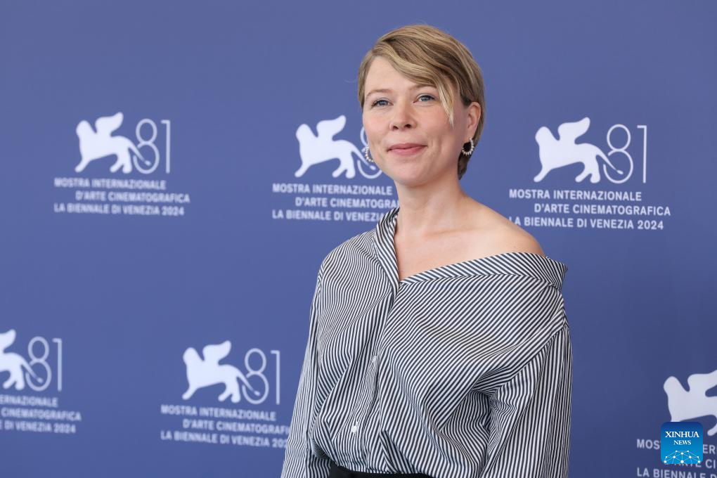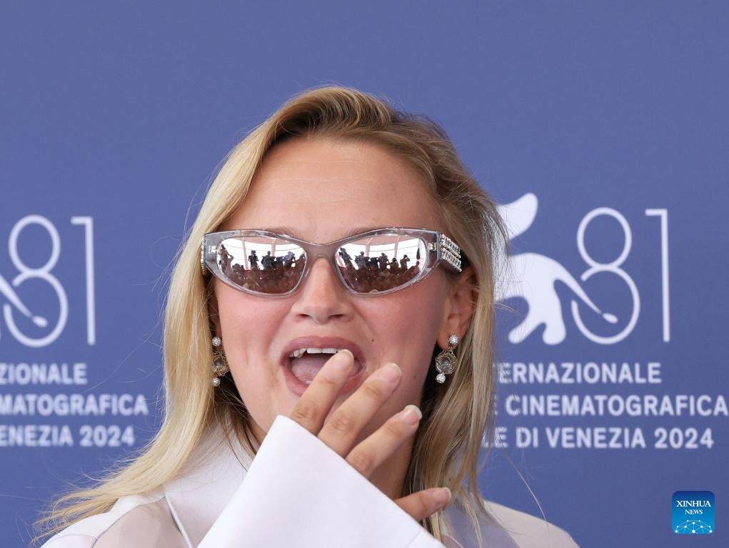Sophie Wilde of the film "Babygirl" poses for the photocall during the 81st Venice Film Festival in Venice, Italy, Aug. 30, 2024. (Xinhua/Li Jing)