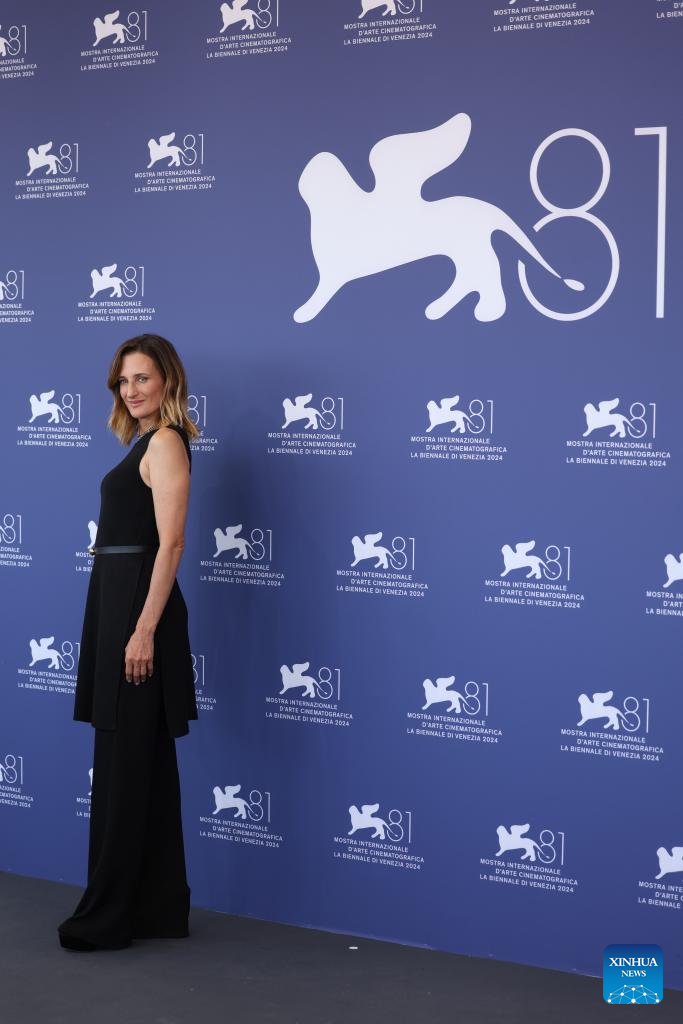 Camille Cottin of the film "Trois Amies" (Three Friends) poses for the photocall during the 81st Venice Film Festival in Venice, Italy, Aug. 29, 2024. (Xinhua/Li Jing)