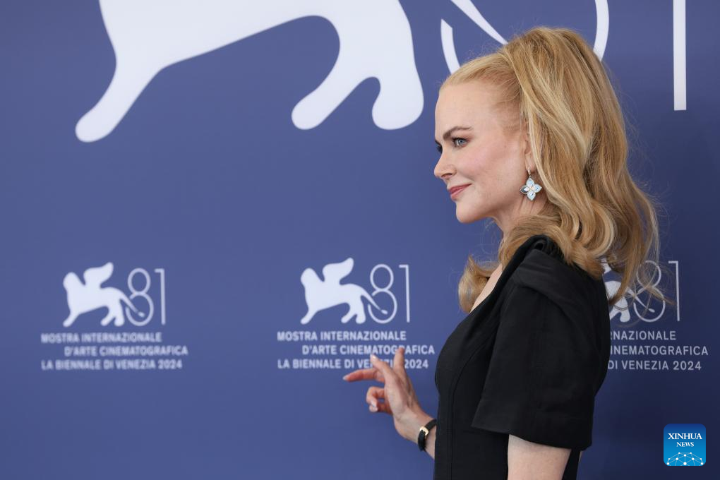 Nicole Kidman of the film "Babygirl" poses for the photocall during the 81st Venice Film Festival in Venice, Italy, Aug. 30, 2024. (Xinhua/Li Jing)