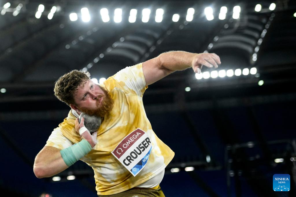 Ryan Crouser of the United States competes during the men's shot put final at the 2024 Diamond League Rome Meeting in Rome, Italy, Aug. 30, 2024. (Photo by Andrea Staccioli/Xinhua)