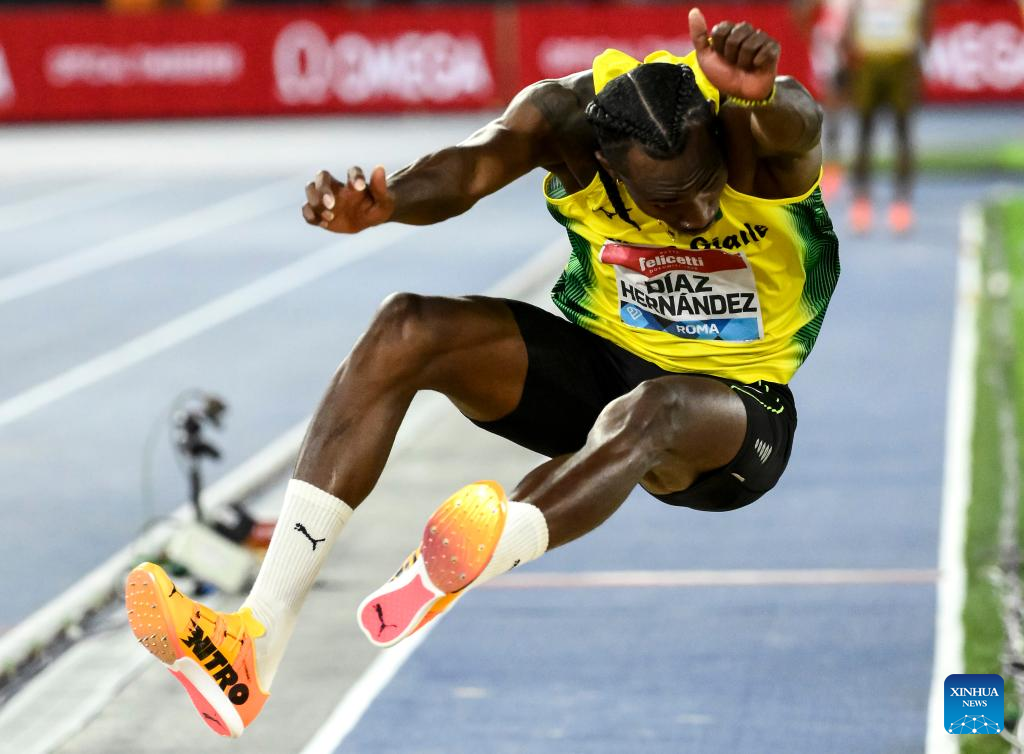 Andy Diaz Hernandez of Italy competes during the men's triple jump final at the 2024 Diamond League Rome Meeting in Rome, Italy, Aug. 30, 2024. (Photo by Andrea Staccioli/Xinhua)