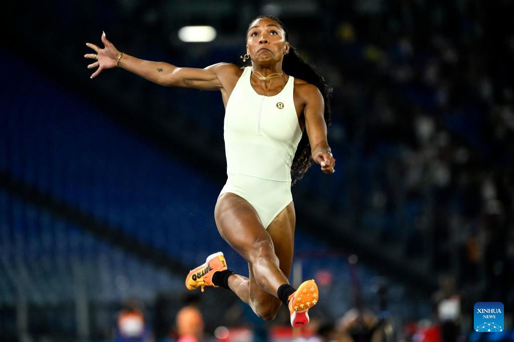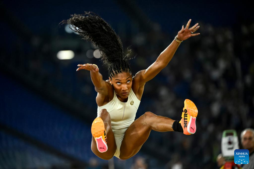 Tara Davis-Woodhall of the United States competes during the women's long jump final at the 2024 Diamond League Rome Meeting in Rome, Italy, Aug. 30, 2024. (Photo by Andrea Staccioli/Xinhua)