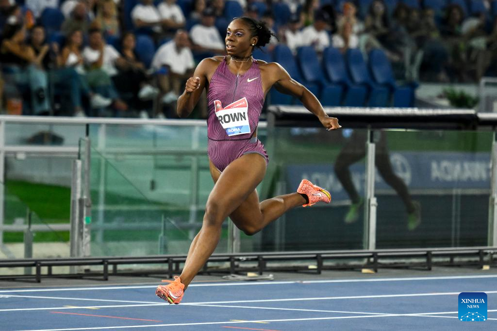 Brittany Brown of the United States competes during the women's 200m final at the 2024 Diamond League Rome Meeting in Rome, Italy, Aug. 30, 2024. (Photo by Andrea Staccioli/Xinhua)