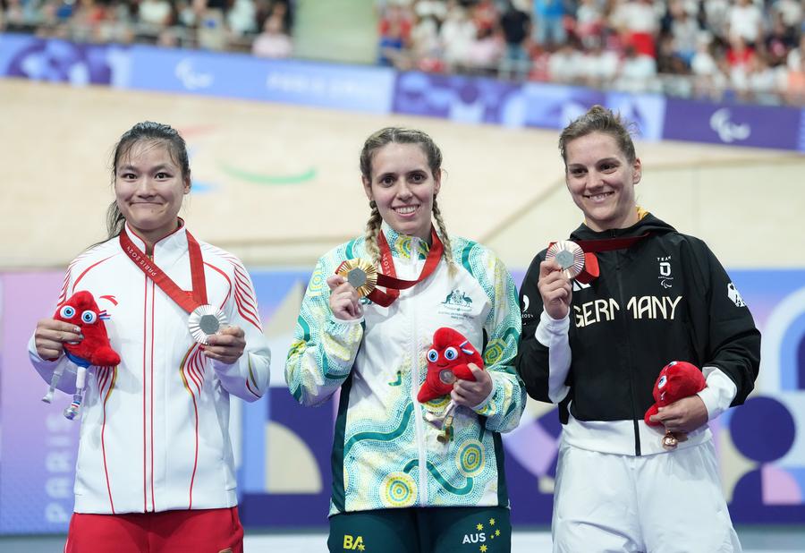 PARIS, Sept. 1 (Xinhua) -- 29-year-old Chinese cyclist Qian Wangwei narrowly missed the gold, earning a silver medal behind defending champion Amanda Reid of Australia in the women's C1-3 500m time trial at the Paris Paralympics on Saturday.