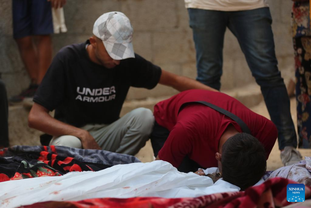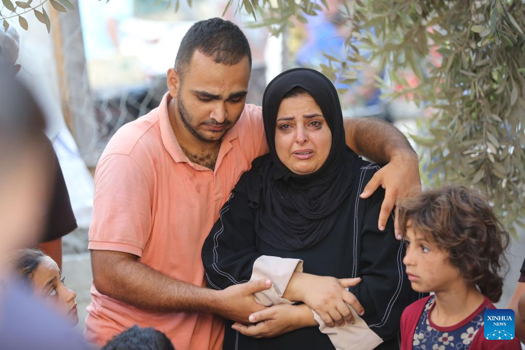 Palestinians mourn their relatives killed by Israeli forces in Nuseirat refugee camp in the central Gaza Strip, on Aug. 31, 2024. Gaza-based health authorities reported on Saturday that the Palestinian death toll from the ongoing Israeli attacks has reached 40,691. (Photo by Marwan Dawood/Xinhua)