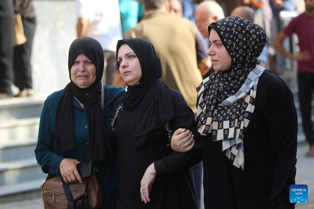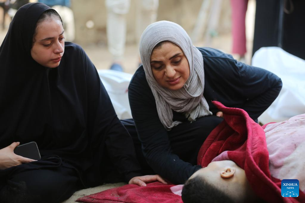Palestinian women mourn their relatives killed by Israeli forces in Nuseirat refugee camp in the central Gaza Strip, on Aug. 31, 2024. Gaza-based health authorities reported on Saturday that the Palestinian death toll from the ongoing Israeli attacks has reached 40,691. (Photo by Marwan Dawood/Xinhua)
