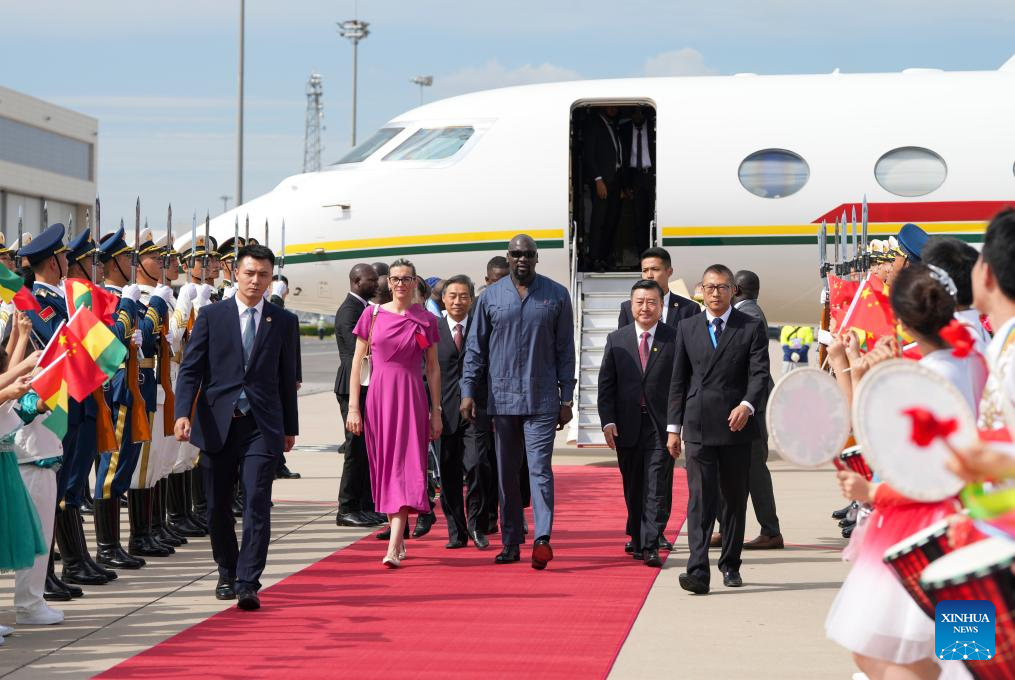 Guinea's transitional president Mamady Doumbouya arrives for the 2024 Summit of the Forum on China-Africa Cooperation (FOCAC) in Beijing, capital of China, Sept. 1, 2024. (Xinhua/Ju Huanzong)