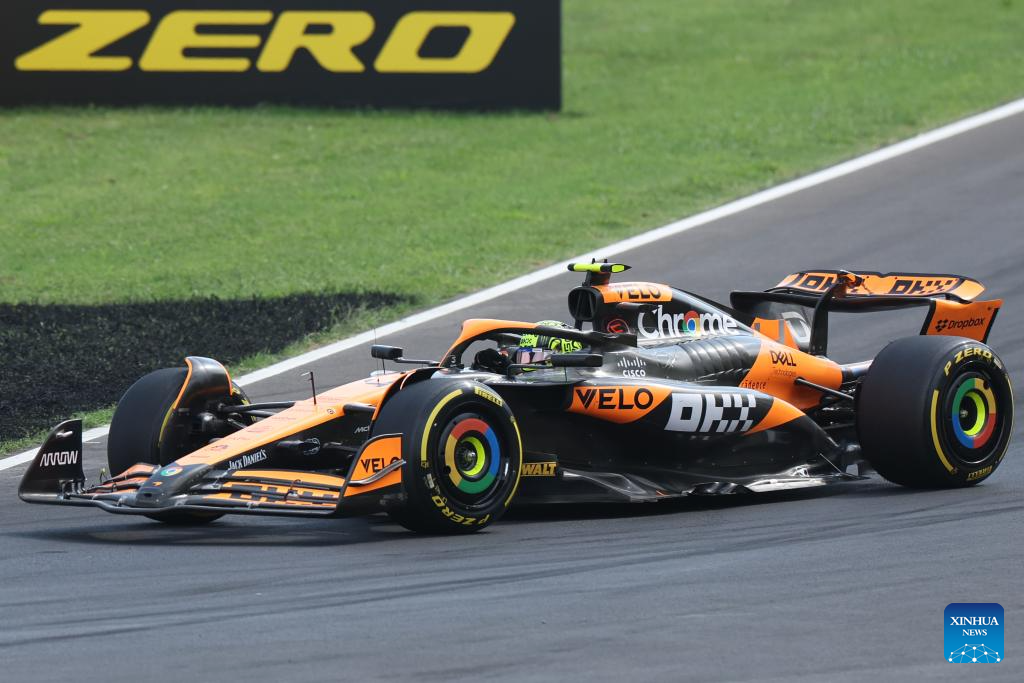 McLaren's British driver Lando Norris competes during the Formula 1 Italian Grand Prix at Monza Circuit, Italy, Sept. 1, 2024. (Xinhua/Zhao Dingzhe)