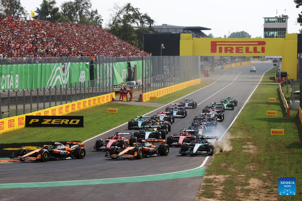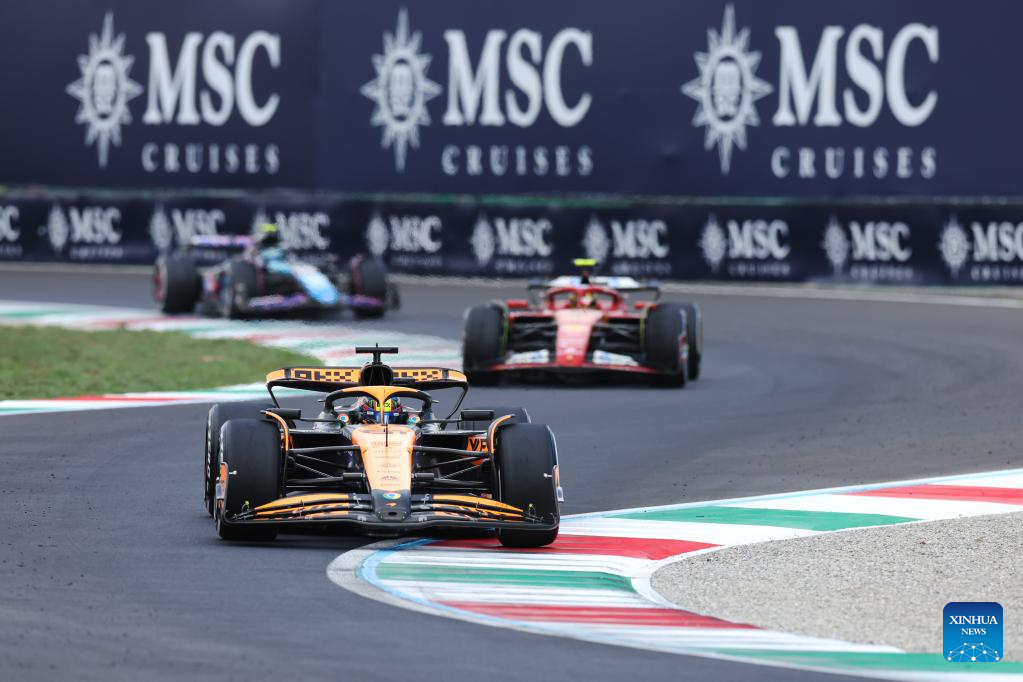 McLaren's Australian driver Oscar Piastri (front) competes during the Formula 1 Italian Grand Prix at Monza Circuit, Italy, Sept. 1, 2024. (Xinhua/Zhao Dingzhe)