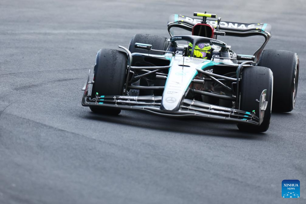 Mercedes' British driver Lewis Hamilton competes during the Formula 1 Italian Grand Prix at Monza Circuit, Italy, Sept. 1, 2024. (Xinhua/Zhao Dingzhe)