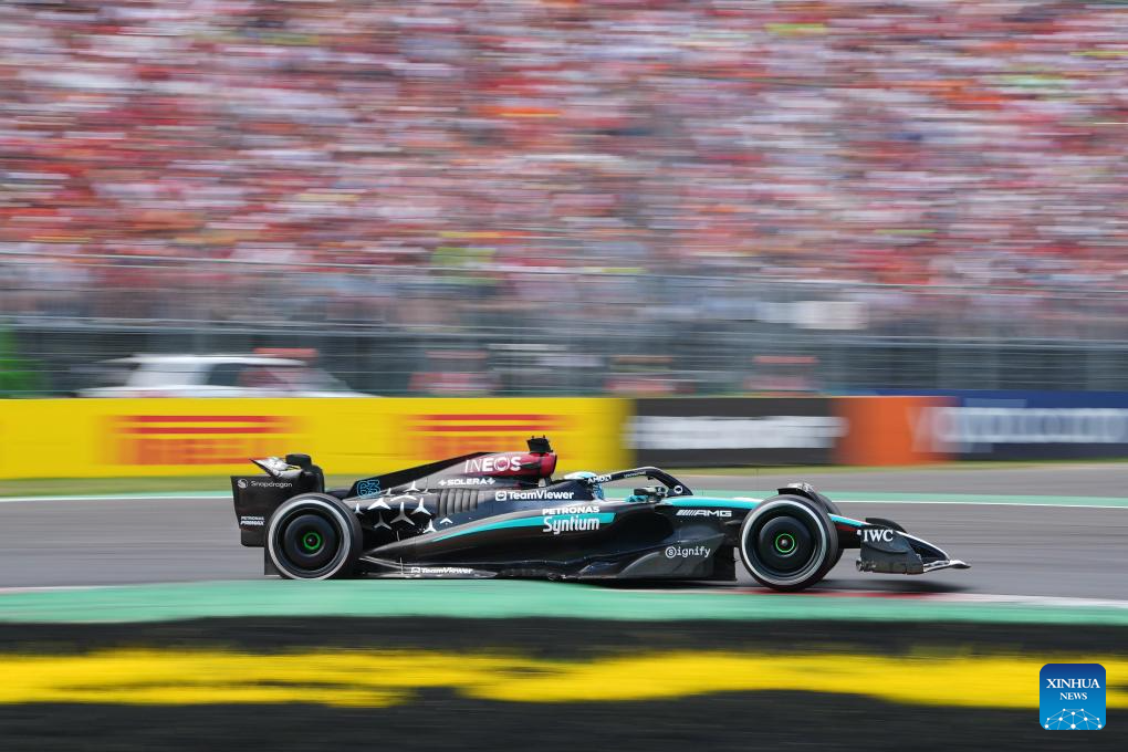 Mercedes' British driver George Russell competes during the Formula 1 Italian Grand Prix at Monza Circuit, Italy, Sept. 1, 2024. (Xinhua/Zhao Dingzhe)