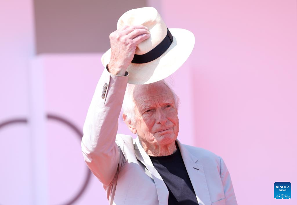 Australian director Peter Weir salutes to film fans on the red carpet during the 81st Venice Film Festival in Venice, Italy, Sept. 2, 2024. Weir was awarded with the Golden Lion for Lifetime Achievement of the film festival on Monday. (Xinhua/Li Jing)
