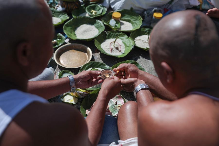 People perform a ritual during Kuse Aunsi, or Father's Day, at Gokarna Temple on the bank of Bagmati River in Kathmandu, Nepal, Sept. 2, 2024. (Photo by Sulav Shrestha/Xinhua)A man performs a ritual during Kuse Aunsi, or Father's Day, at Gokarna Temple on the bank of Bagmati River in Kathmandu, Nepal, Sept. 2, 2024. (Photo by Sulav Shrestha/Xinhua)A man offers prayers during Kuse Aunsi, or Father's Day, at Gokarna Temple on the bank of Bagmati River in Kathmandu, Nepal, Sept. 2, 2024. (Photo by Sulav Shrestha/Xinhua)■