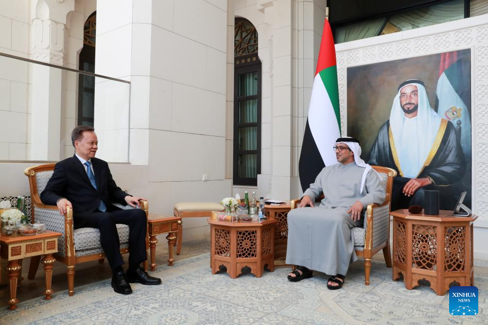 At the invitation of the UAE government, a CPC delegation led by Chen visited the Gulf state from Sunday to Wednesday, during which they also met with UAE Vice President and Deputy Prime Minister Sheikh Mansour bin Zayed bin Sultan Al Nahyan, Deputy Prime Minister and Foreign Minister Sheikh Abdullah bin Zayed Al Nahyan, UAE Minister of Economy Abdulla Bin Touq Al Marri, and Sultan Ahmed bin Sulayem, chairman and chief executive officer of DP World.