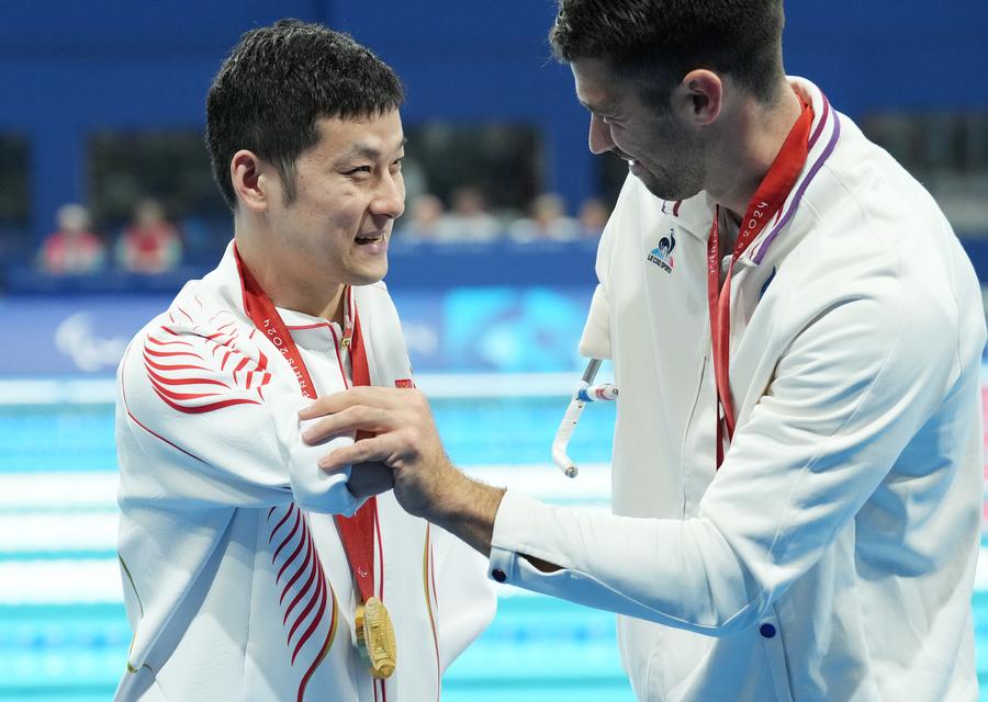 Feng Yanke of China celebrates after the Men's Sabre Category B of wheelchair fencing against Michal Dabrowski of Poland at the Paris 2024 Paralympic Games in Paris, France, Sept. 3, 2024. (Xinhua/Zhang Haofu)Gold medalist Yuan Weiyi (C), silver medalist Guo Jincheng (R), bronze medalist Wang Lichao of China pose for photo after the awarding ceremony of the men's 50m backstroke S5 final of swimming event at the Paris 2024 Paralympic Games in Paris, France, Sept. 3, 2024. (Xinhua/Gao Jing)Yuan Weiyi of China competes during the men's 50m backstroke S5 final of swimming event at the Paris 2024 Paralympic Games in Paris, France, Sept. 3, 2024. (Xinhua/Gao Jing)Gold medalist Feng Yanke (5th L) and bronze medalist Zhang Jie (6th L) of China, silver medalist Kinga Drozdz (4th L) of Poland are pictured during the Men's Sabre Category B of wheelchair fencing against Michal Dabrowski of Poland at the Paris 2024 Paralympic Games in Paris, France, Sept. 3, 2024. (Xinhua/Zhang Haofu)Feng Yanke of China celebrates after the Men's Sabre Category B of wheelchair fencing against Michal Dabrowski of Poland at the Paris 2024 Paralympic Games in Paris, France, Sept. 3, 2024. (Xinhua/Zhang Haofu)China's Lu Dong (C), He Shenggao (L) and Liu Yu pose for photo after the awarding ceremony of the women's 50m backstroke S5 final of swimming event at the Paris 2024 Paralympic Games in Paris, France, Sept. 3, 2024. (Xinhua/Gao Jing)Lu Dong of China competes during the women's 50m backstroke S5 final of swimming event at the Paris 2024 Paralympic Games in Paris, France, Sept. 3, 2024. (Xinhua/Gao Jing)China's Lu Dong (C), He Shenggao (L) and Liu Yu pose for photo after the awarding ceremony of the women's 50m backstroke S5 final of swimming event at the Paris 2024 Paralympic Games in Paris, France, Sept. 3, 2024. (Xinhua/Gao Jing)Gu Haiyan of China celebrates after winning the Women's Sabre Category A gold medal match of wheelchair fencing against Kinga Drozdz of Poland at the Paris 2024 Paralympic Games in Paris, France, Sept. 3, 2024. (Xinhua/Zhang Haofu)Gu Haiyan (R) of China competes during the Women's Sabre Category A gold medal match of wheelchair fencing against Kinga Drozdz of Poland at the Paris 2024 Paralympic Games in Paris, France, Sept. 3, 2024. (Xinhua/Zhang Haofu)Wang Jingang of China poses with medal after the awarding ceremony of Men's 50m Butterfly S6 final of swimming event at the Paris 2024 Paralympic Games in Paris, France, Sept. 3, 2024. (Xinhua/Gao Jing)Gold medalist Wang Jingang (L) of China and bronze medalist Laurent Chardard of France talk after the awarding ceremony of Men's 50m Butterfly S6 final of swimming event at the Paris 2024 Paralympic Games in Paris, France, Sept. 3, 2024. (Xinhua/Gao Jing)A woman visits the "Beautiful Crafts Workshop, Blossoming in Paris" exhibition of cultural and creative works by women with disabilities at Chinese Cultural Center in Paris, France, Sept. 3, 2024. (Xinhua/Hou Zhaokang)A visitor learns wooden comb painting during the "Beautiful Crafts Workshop, Blossoming in Paris" exhibition of cultural and creative works by women with disabilities at Chinese Cultural Center in Paris, France, Sept. 3, 2024. (Xinhua/Hou Zhaokang)■