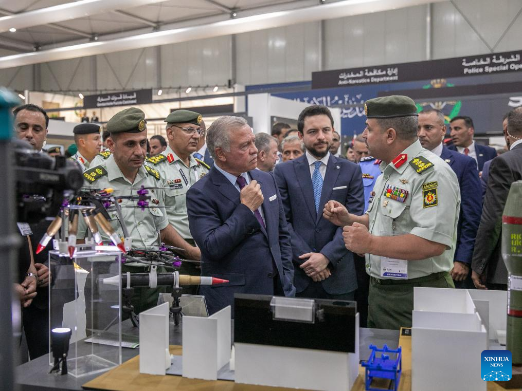 Jordan's King Abdullah II visits the 14th Special Operations Forces Exhibition and Conference (SOFEX) in Aqaba, Jordan, Sept. 3, 2024. The three-day SOFEX kicked off here on Tuesday. (Royal Hashemite Court/Handout via Xinhua)