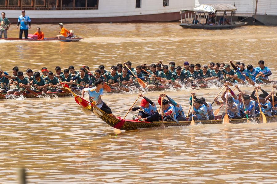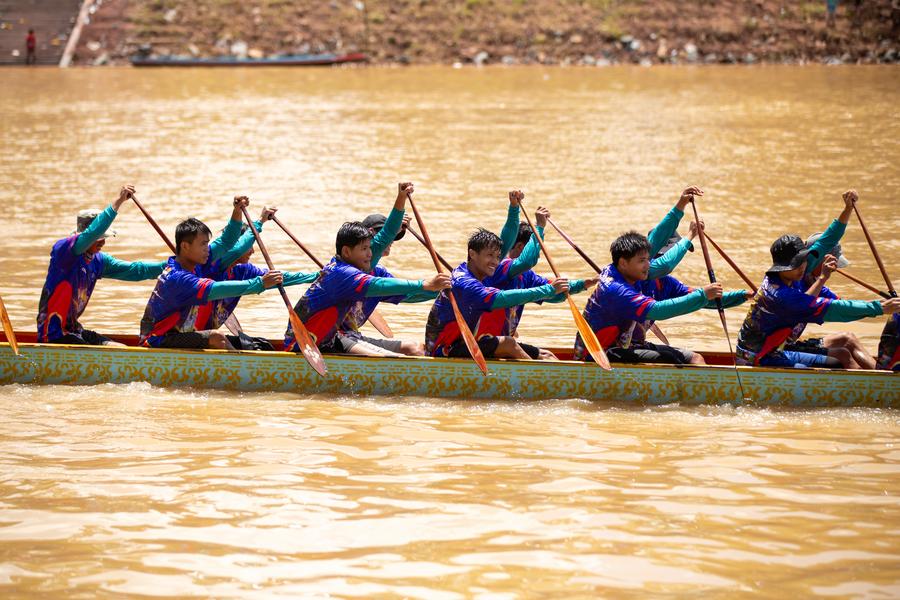 LUANG PRABANG, Laos, Sept. 4 (Xinhua) -- Participants tried their best to compete during an annual dragon boat racing festival in Luang Prabang, Laos.