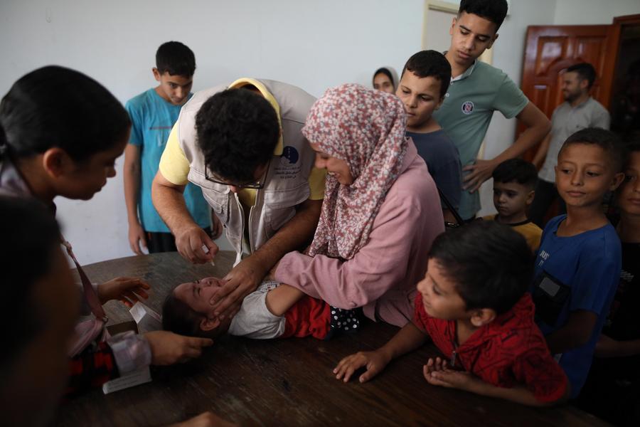 UNITED NATIONS, Sept. 3 (Xinhua) -- UN humanitarians said on Tuesday that more than 160,000 children under 10 in central Gaza have received the poliovirus vaccine in the first two days of a six-day campaign.