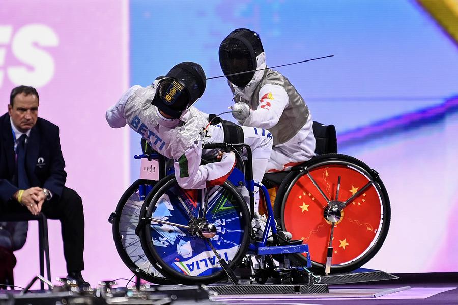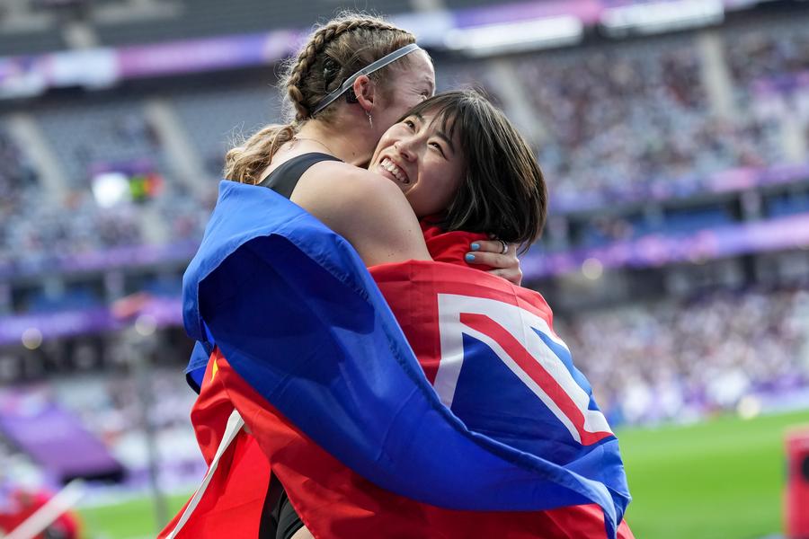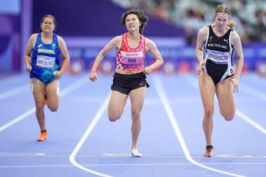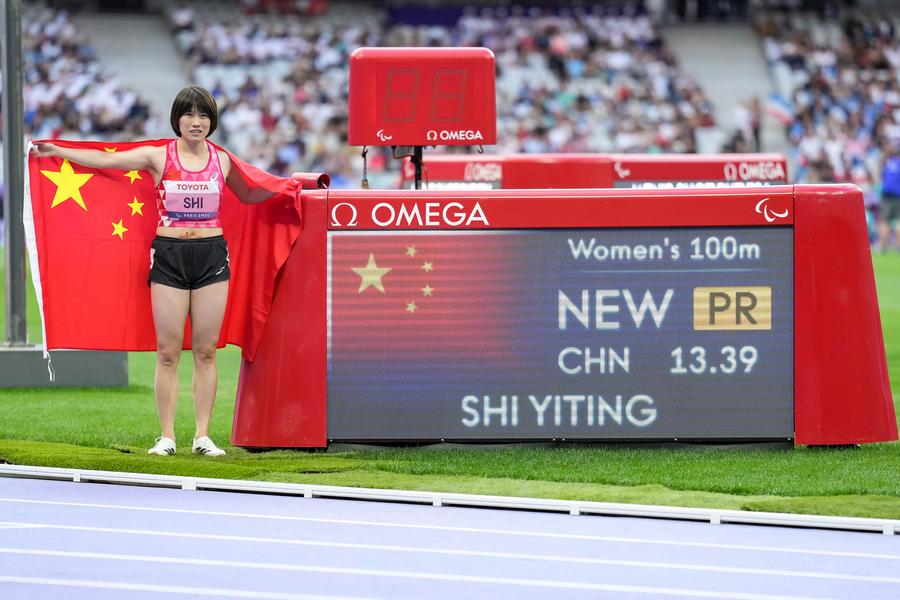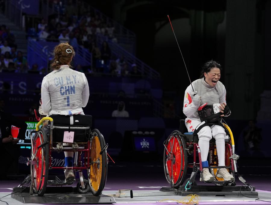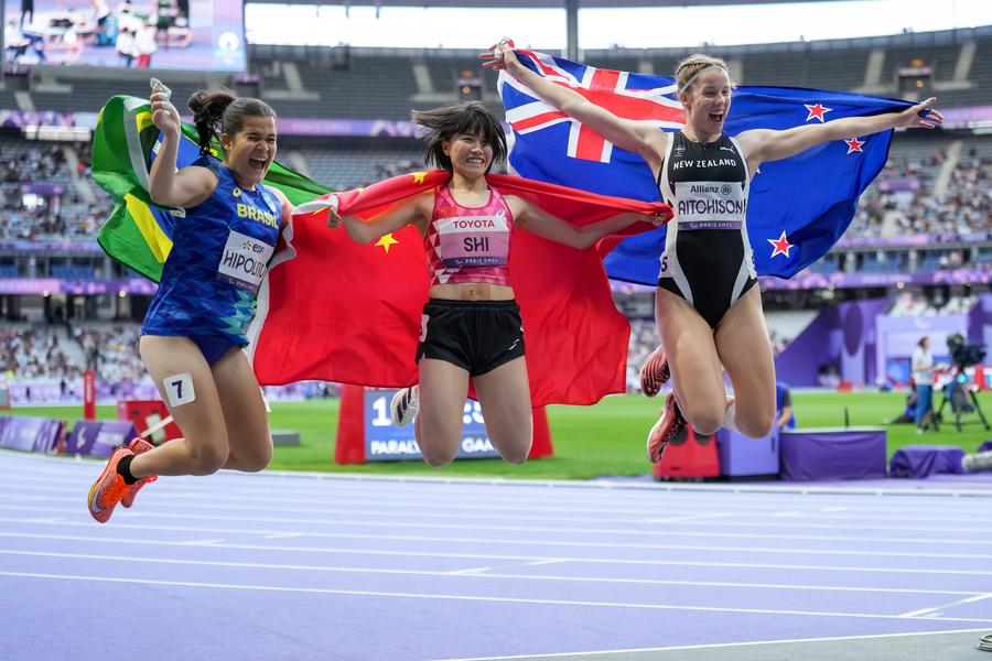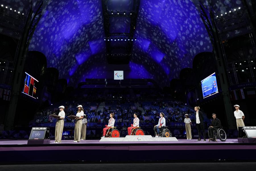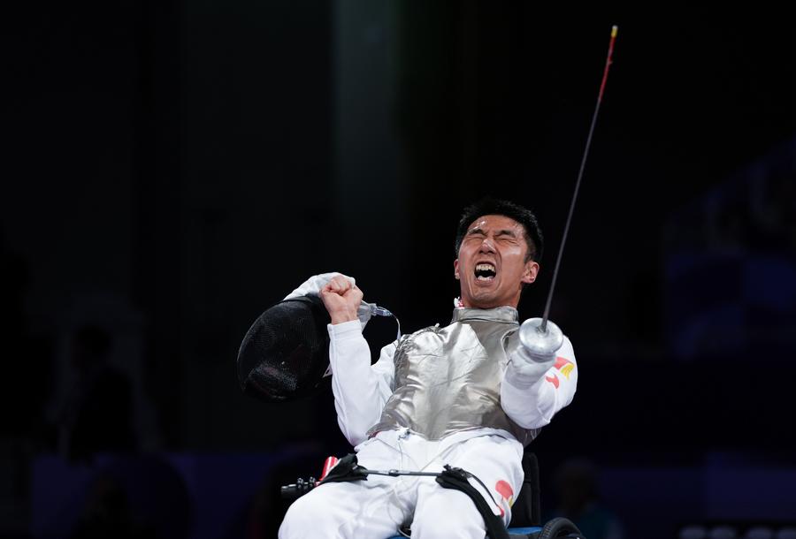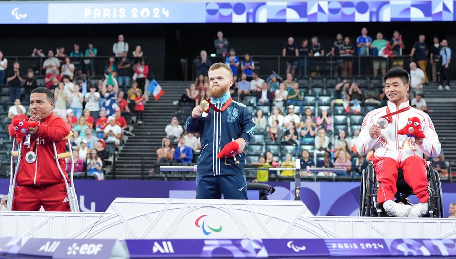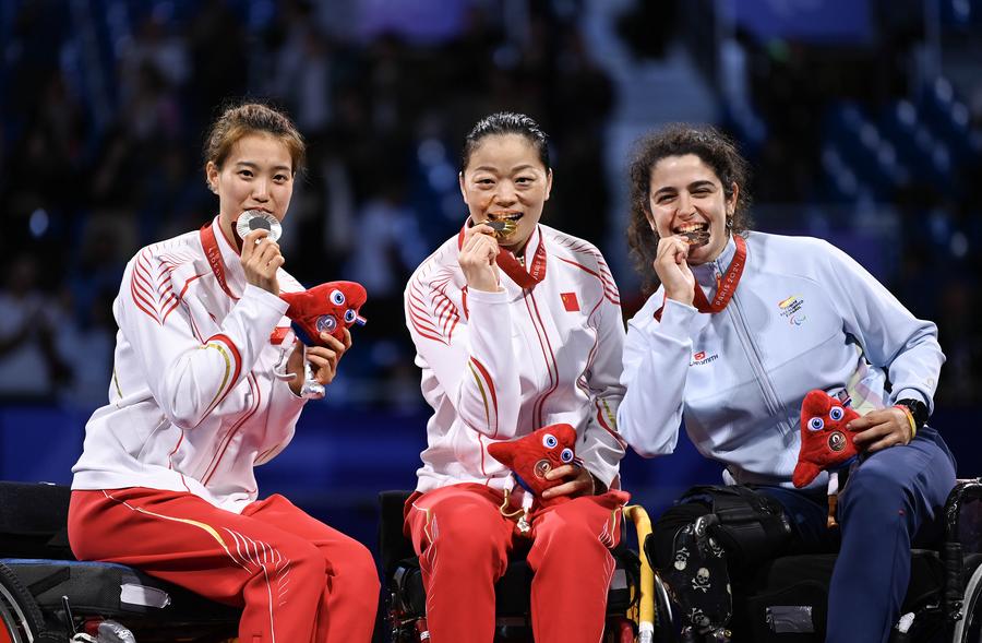 Sun Gang of China celebrates after the men's foil category A gold medal bout at the Paris 2024 Paralympic Games in Paris, France, Sept. 4, 2024. (Xinhua/Xing Guangli)Sun Gang (R) of China and Matteo Betti (C) of Italy compete during the men's foil category A gold medal bout at the Paris 2024 Paralympic Games in Paris, France, Sept. 4, 2024. (Xinhua/Zhang Haofu)Jiang Yuyan of China reacts after the women's 100m freestyle S7 final of swimming event at the Paris 2024 Paralympic Games in Paris, France, Sept. 4, 2024. (Xinhua/Xiong Qi)Jiang Yuyan of China celebrates during the awarding ceremony of the women's 100m freestyle S7 final of swimming event at the Paris 2024 Paralympic Games in Paris, France, Sept. 4, 2024. (Xinhua/Xiong Qi)This multiple exposure photo taken on Sept. 4, 2024 shows Zou Xufeng (L) of China and her compatriot Gu Haiyan competing during the women's foil category A gold medal bout at the Paris 2024 Paralympic Games in Paris, France. (Xinhua/Zhang Haofu)Photo taken on Sept. 4, 2024 shows the awarding ceremony of the women's foil category A at the Paris 2024 Paralympic Games in Paris, France. (Xinhua/Zhang Haofu)Gold medalist Zou Xufeng (C) of China, silver medalist Gu Haiyan (L) of China and bronze medalist Judith Rodriguez Menendez pose for a group photo during the awarding ceremony after the women's foil category A gold medal bout at the Paris 2024 Paralympic Games in Paris, France, Sept. 4, 2024. (Xinhua/Zhang Haofu)Zou Xufeng (R) of China celebrates after the women's foil category A gold medal bout at the Paris 2024 Paralympic Games in Paris, France, Sept. 4, 2024. (Xinhua/He Canling)Hagino Mayo (R) of Japan falls on the court during the Wheelchair Basketball women's quarterfinal between China and Japan at the Paris 2024 Paralympic Games in Paris, France, Sep. 4, 2024. (Xinhua/Gao Jing)Natalia Partyka of Poland competes during the Para Table Tennis women's singles WS10 final against Yang Qian of Australia at the Paris 2024 Paralympic Games in Paris, France, Sept. 4, 2024. (Xinhua/Zhang Cheng)Natalia Partyka of Poland competes during the Para Table Tennis women's singles WS10 final against Yang Qian of Australia at the Paris 2024 Paralympic Games in Paris, France, Sept. 4, 2024. (Xinhua/Zhang Cheng)Silver medalist Natalia Partyka of Poland looks at the medal during the awarding ceremony after the Para Table Tennis women's singles WS10 final against Yang Qian of Australia at the Paris 2024 Paralympic Games in Paris, France, Sept. 4, 2024. (Xinhua/Zhang Cheng)Gold medalist China's Shi Yiting (C), silver medalist New Zealand's Danielle Aitchison (R) and Bronze medalist Brazil's Veronica Hipolito celebrate after the para athletics women's 100m T36 final at the Paris 2024 Paralympic Games in Paris, France, Sept. 4, 2024. (Xinhua/Zhang Cheng)Gold medalist China's Shi Yiting kisses the medal during the awarding ceremony of the para athletics women's 100m T36 final at the Paris 2024 Paralympic Games in Paris, France, Sept. 4, 2024. (Xinhua/Huang Wei)Gold medalist China's Shi Yiting (R) hugs with silver medalist New Zealand's Danielle Aitchison after the para athletics women's 100m T36 final at the Paris 2024 Paralympic Games in Paris, France, Sept. 4, 2024. (Xinhua/Zhang Cheng)China's Shi Yiting (C), New Zealand's Danielle Aitchison (R) and Brazil's Veronica Hipolito compete during the para athletics women's 100m T36 final at the Paris 2024 Paralympic Games in Paris, France, Sept. 4, 2024. (Xinhua/Zhang Cheng)China's Shi Yiting poses with timeboard after the para athletics women's 100m T36 final at the Paris 2024 Paralympic Games in Paris, France, Sept. 4, 2024. (Xinhua/Zhang Cheng)Gold medalist David Degtyarev (C) of Kazakhstan, silver medalist Pablo Ramirez Barrientos (L) of Cuba, and bronze medalist Yang Jinglang of China attend the awarding ceremony of the para powerlifting men's up to 54kg final at the Paris 2024 Paralympic Games in Paris, France, Sept. 4, 2024. (Xinhua/Lian Yi)David Degtyarev of Kazakhstan leaves after the para powerlifting men's up to 54kg final at the Paris 2024 Paralympic Games in Paris, France, Sept. 4, 2024. (Xinhua/Lian Yi)Patryk Chojnowski of Poland celebrates after winning the Para Table Tennis men's singles MS10 final match between Lian Hao of China and Patryk Chojnowski of Poland at the Paris 2024 Paralympic Games in Paris, France, Sept. 4, 2024. (Xinhua/Hou Zhaokang)Patryk Chojnowski of Poland competes during the Para Table Tennis men's singles MS10 final match between Lian Hao of China and Patryk Chojnowski of Poland at the Paris 2024 Paralympic Games in Paris, France, Sept. 4, 2024. (Xinhua/Hou Zhaokang)Lian Hao of China competes during the Para Table Tennis men's singles MS10 final match between Lian Hao of China and Patryk Chojnowski of Poland at the Paris 2024 Paralympic Games in Paris, France, Sept. 4, 2024. (Xinhua/Hou Zhaokang)Yu Deyi of China competes during the Goalball men's semifinal match between China and Japan at the Paris 2024 Paralympic Games in Paris, France, Sept. 4, 2024. (Xinhua/Hou Zhaokang)Nazmiye Muratli (R) of Türkiye reacts during the para powerlifting women's up to 45kg final at the Paris 2024 Paralympic Games in Paris, France, Sept. 4, 2024. (Xinhua/Lian Yi)Yang Mingyuan of China fails to save the penalty during the Goalball men's semifinal match between China and Japan at the Paris 2024 Paralympic Games in Paris, France, Sept. 4, 2024. (Xinhua/Hou Zhaokang)Liu Qiangli of China competes during the men's H5 individual time trial of para cycling road event at the Paris 2024 Paralympic Games in Paris, France, Sept. 4, 2024. (Xinhua/Zhang Haofu)Chen Jianxin of China competes during the men's T1-2 individual time trial of para cycling road event at the Paris 2024 Paralympic Games in Paris, France, Sept. 4, 2024. (Xinhua/He Canling)Liu Qiangli of China competes during the men's H5 individual time trial of para cycling road event at the Paris 2024 Paralympic Games in Paris, France, Sept. 4, 2024. (Xinhua/Zhang Haofu)Dai J