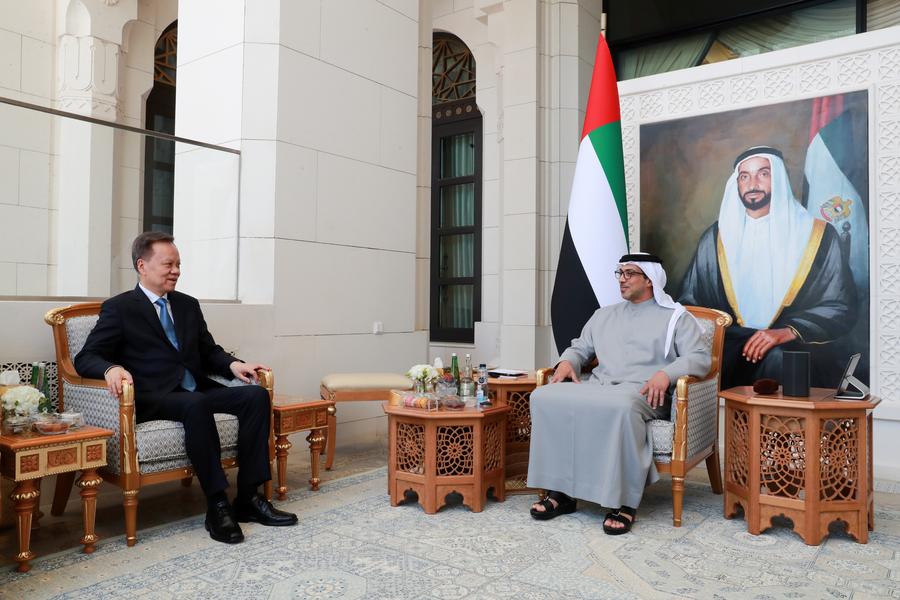 At the invitation of the UAE government, a CPC delegation led by Chen visited the Gulf state from Sunday to Wednesday, during which they also met with UAE Vice President and Deputy Prime Minister Sheikh Mansour bin Zayed bin Sultan Al Nahyan, Deputy Prime Minister and Foreign Minister Sheikh Abdullah bin Zayed Al Nahyan, UAE Minister of Economy Abdulla Bin Touq Al Marri, and Sultan Ahmed bin Sulayem, chairman and chief executive officer of DP World.