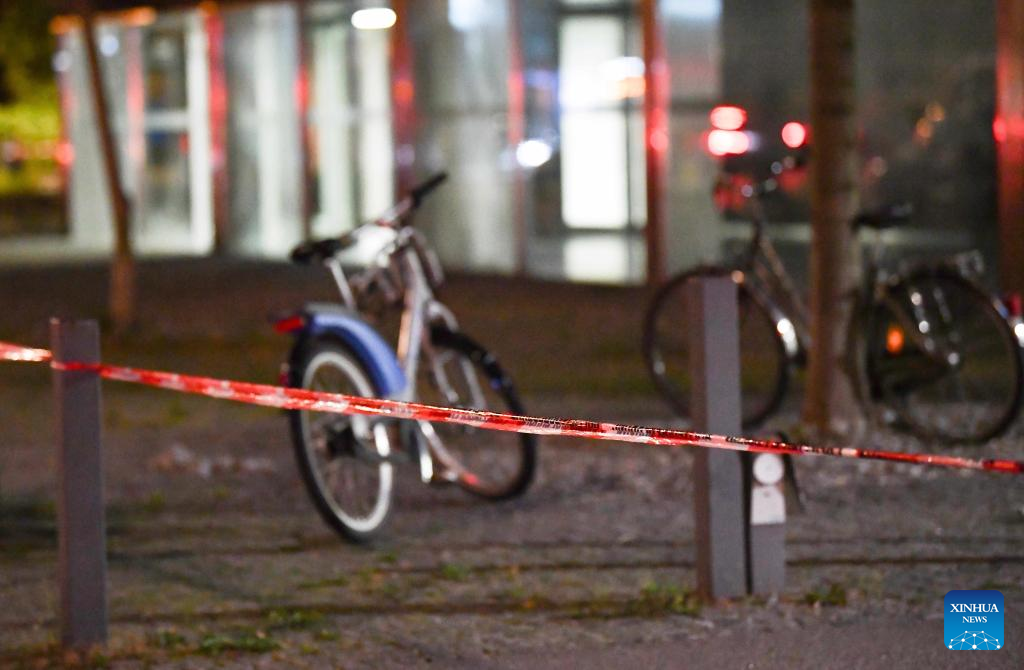 Photo taken on Sept. 5, 2024 shows a police cordon near the Israeli Consulate General in Munich, Germany. An armed man was shot dead by police near the Israeli Consulate General in central Munich, Germany, local police confirmed on Thursday. (Xinhua/Ren Pengfei)